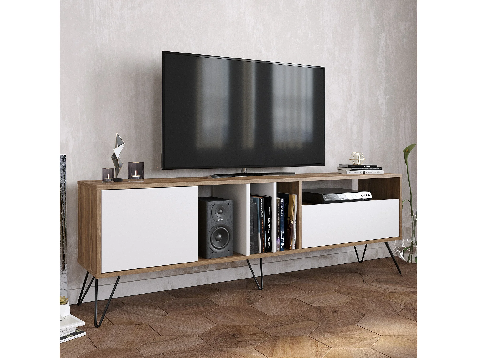 Mistiko Meuble TV 180 cm Niches et Armoires avec Pieds en Métal (Noyer et Blanc)