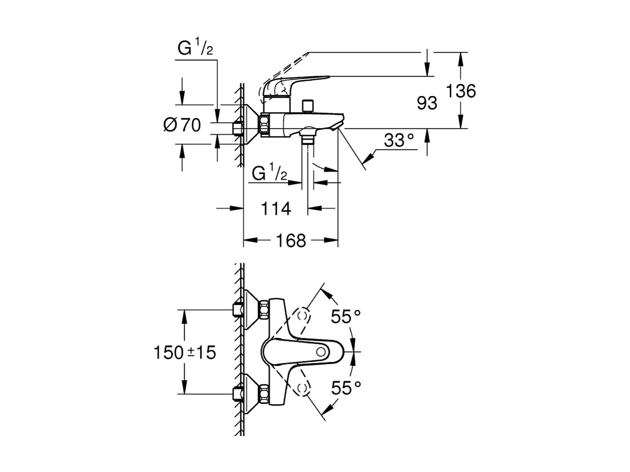 Mitigeur bain mécanique GROHE Bauloop avec ensemble de douche GROHE Vitalio Start