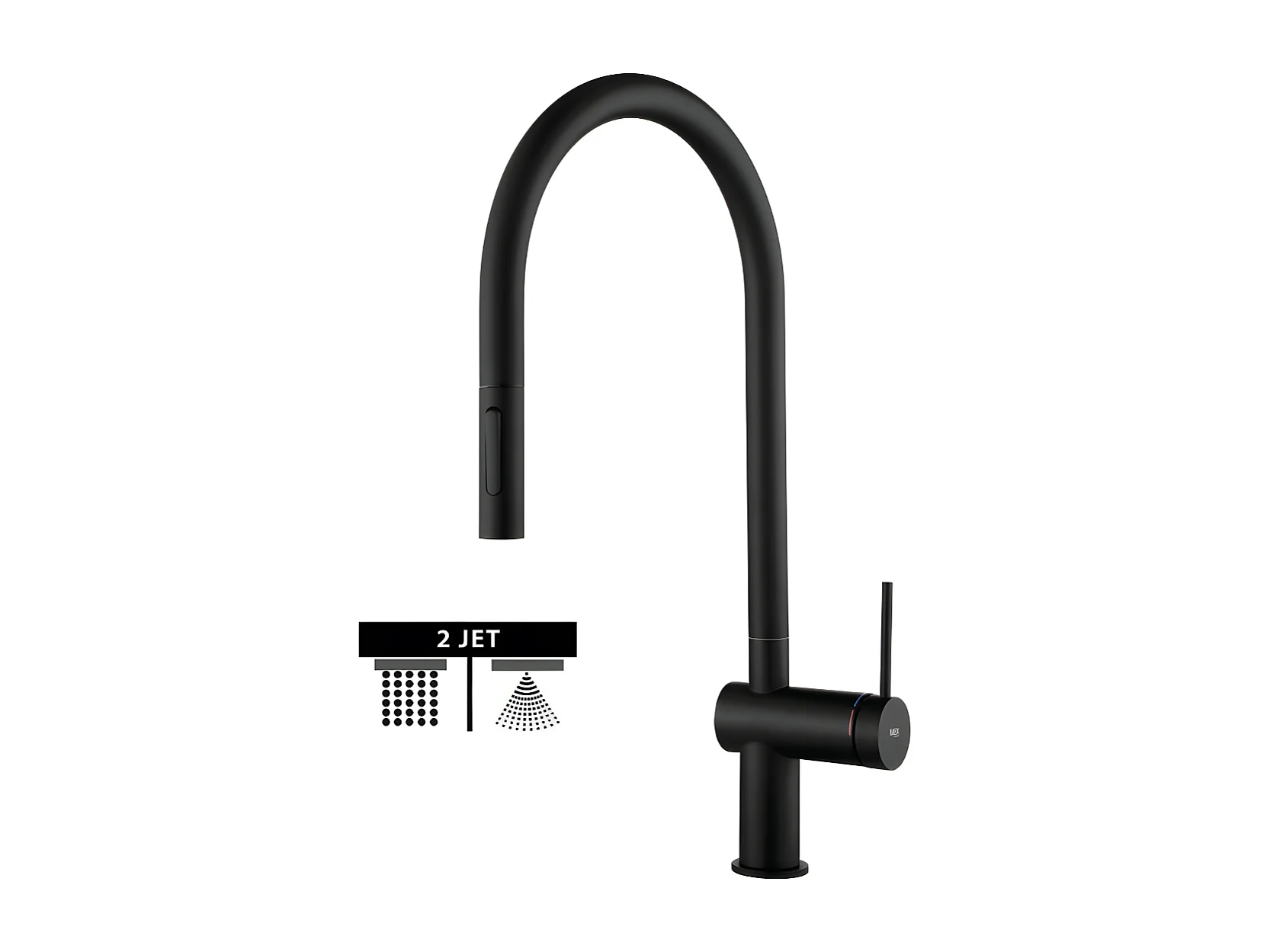Mitigeur Évier Cuisine avec douchette extractible noir mat - Design moderne – BERNA IMEX