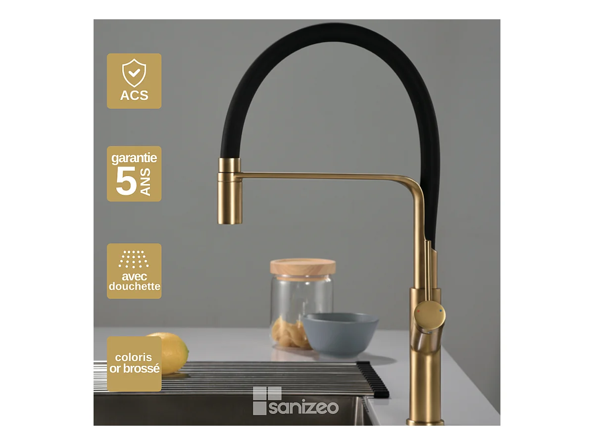 Mitigeur Évier Cuisine avec douchette extractible or brossé - Design moderne – SENA IMEX