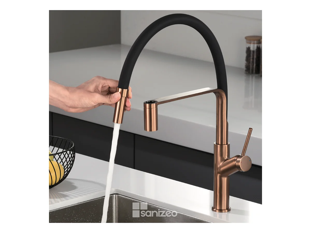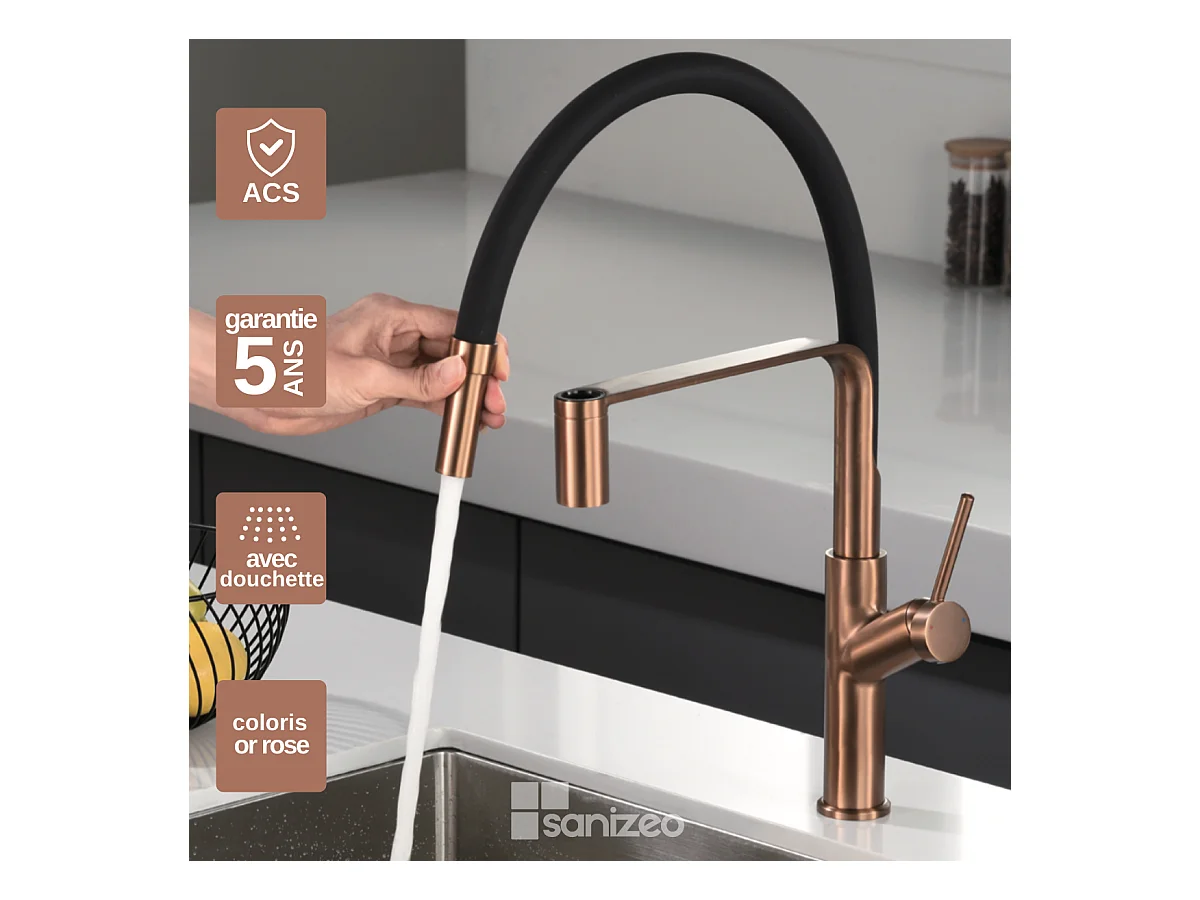 Mitigeur Évier Cuisine avec douchette extractible or rose brossé - Design moderne – SENA IMEX