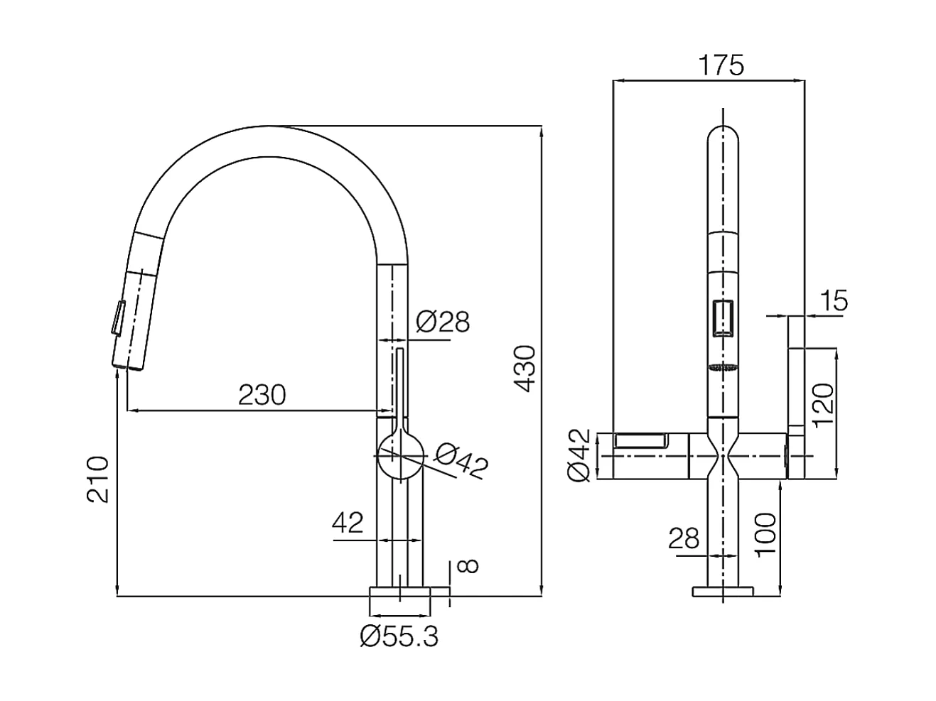 Mitigeur Évier Cuisine/Écran avec douchette extractible chromé - Design moderne – TURIN IMEX