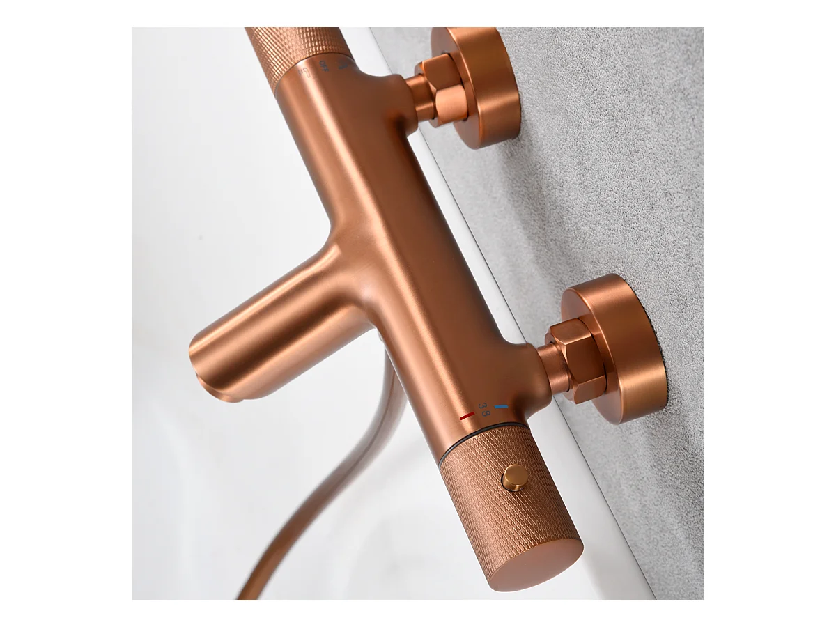 Ensemble Bain/Douche Anti-Calcaire Thermostatique Or Rose Cuivré LINE BTD038-4ORC