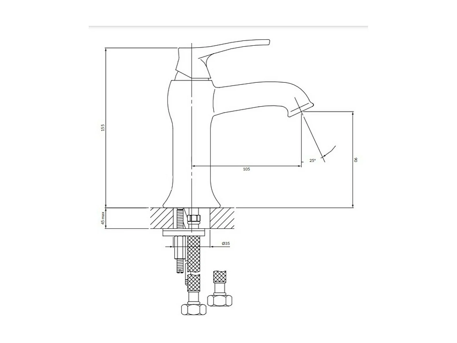 Mitigeur Lavabo Bas Art Deco, 16 Cm, Avec Bouchon Clic-clac, couleur : Cuivre Antique