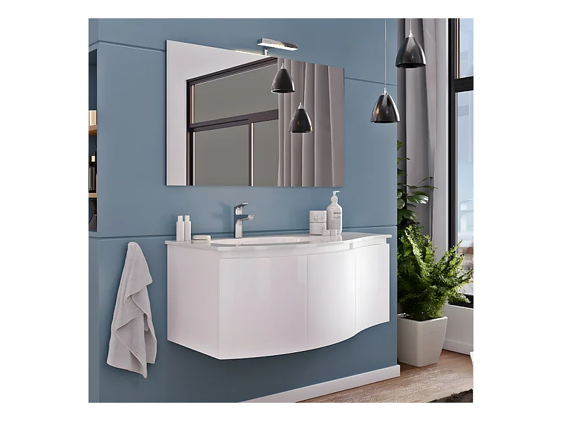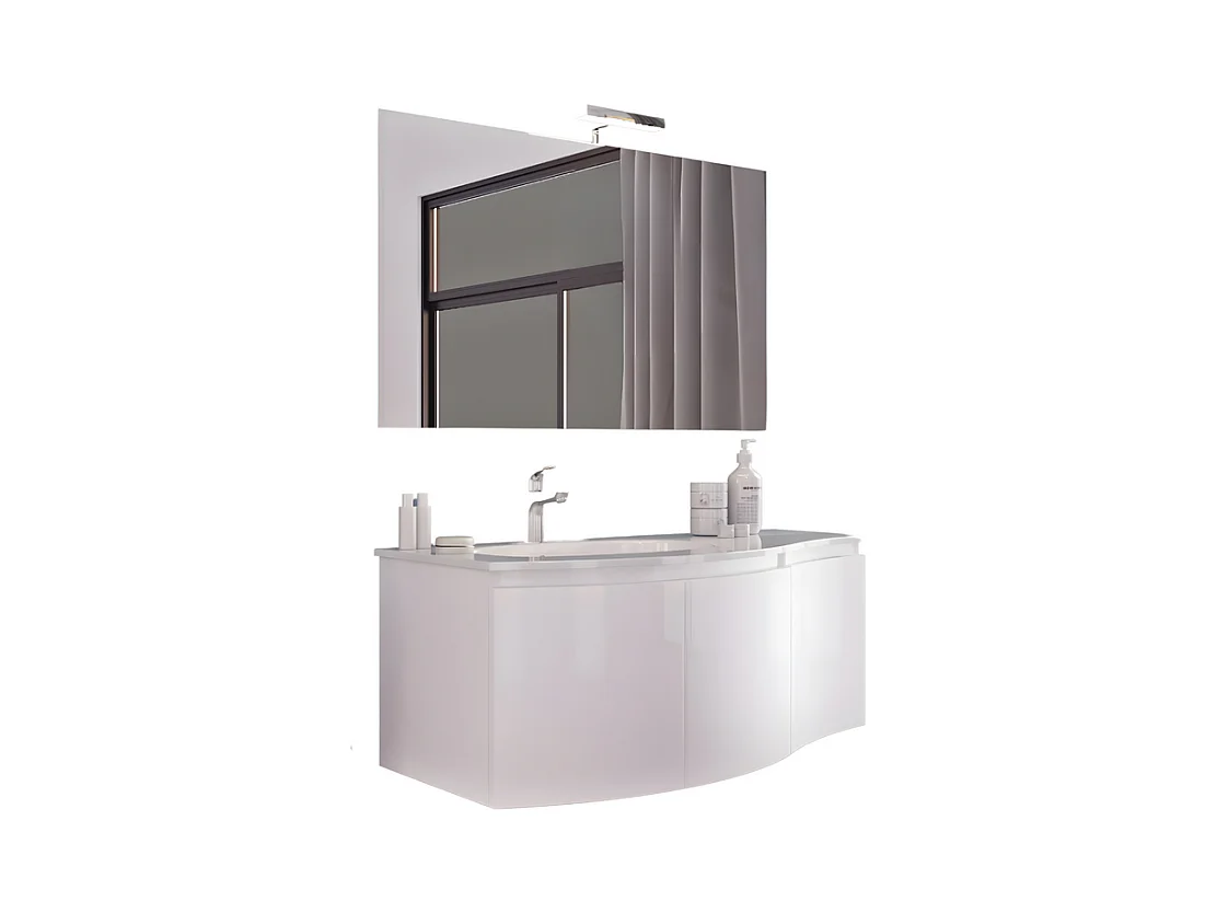 Mobile da bagno sopeso bianco lucido "Malani" 3 ante con specchio LED et lavabo intégré cm 105x50 55h