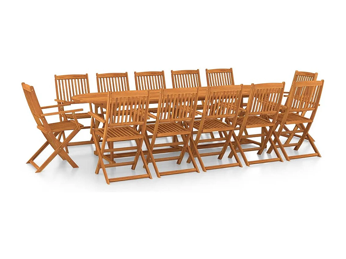 Mobilier à dîner de jardin 13 pcs Bois d'acacia massif 3