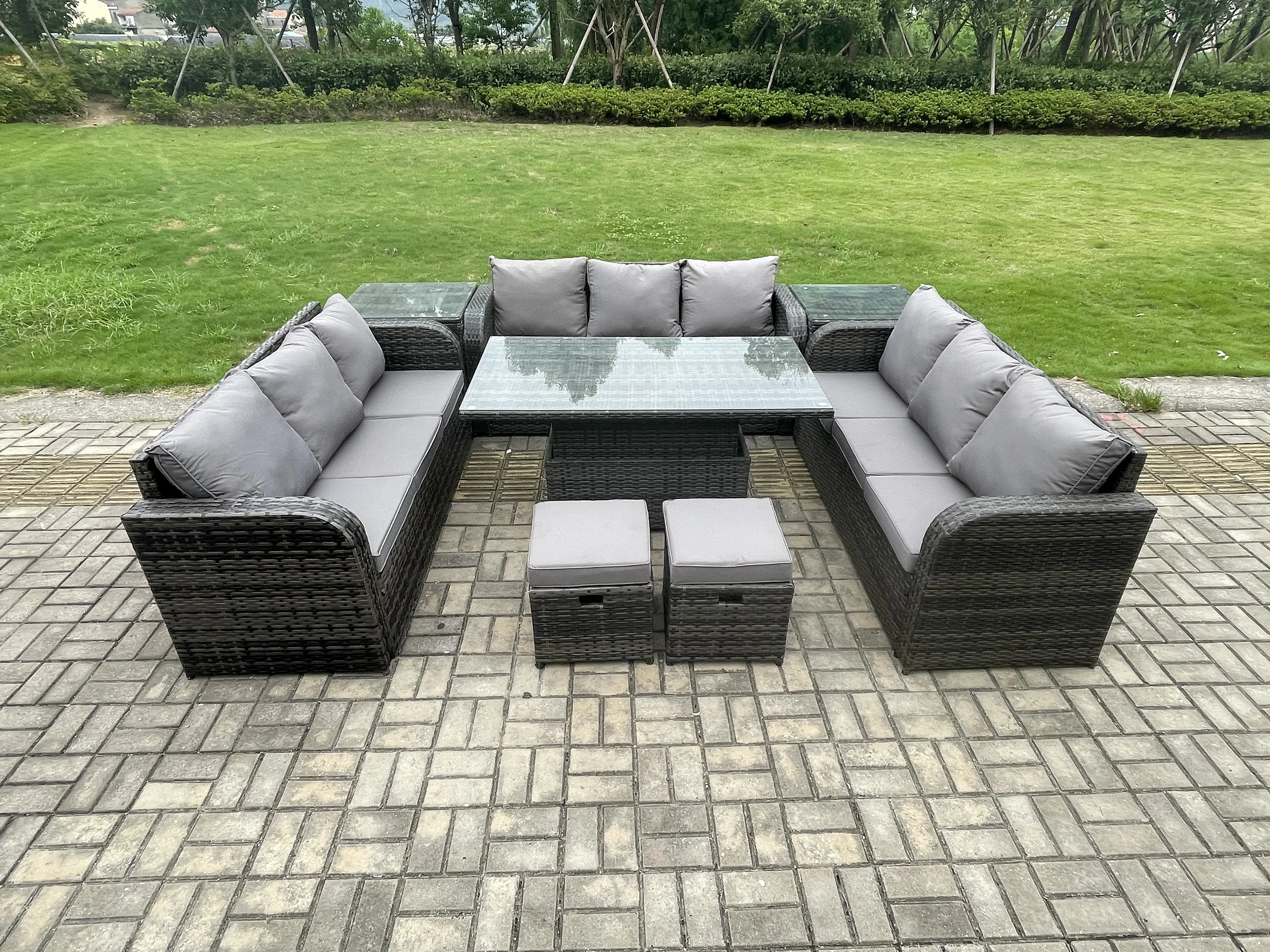 Mobilier À Dîner De Jardin ave Table à manger réglable en hauteur 3 Canapé 2 Table d'appoint 2 Tabourets