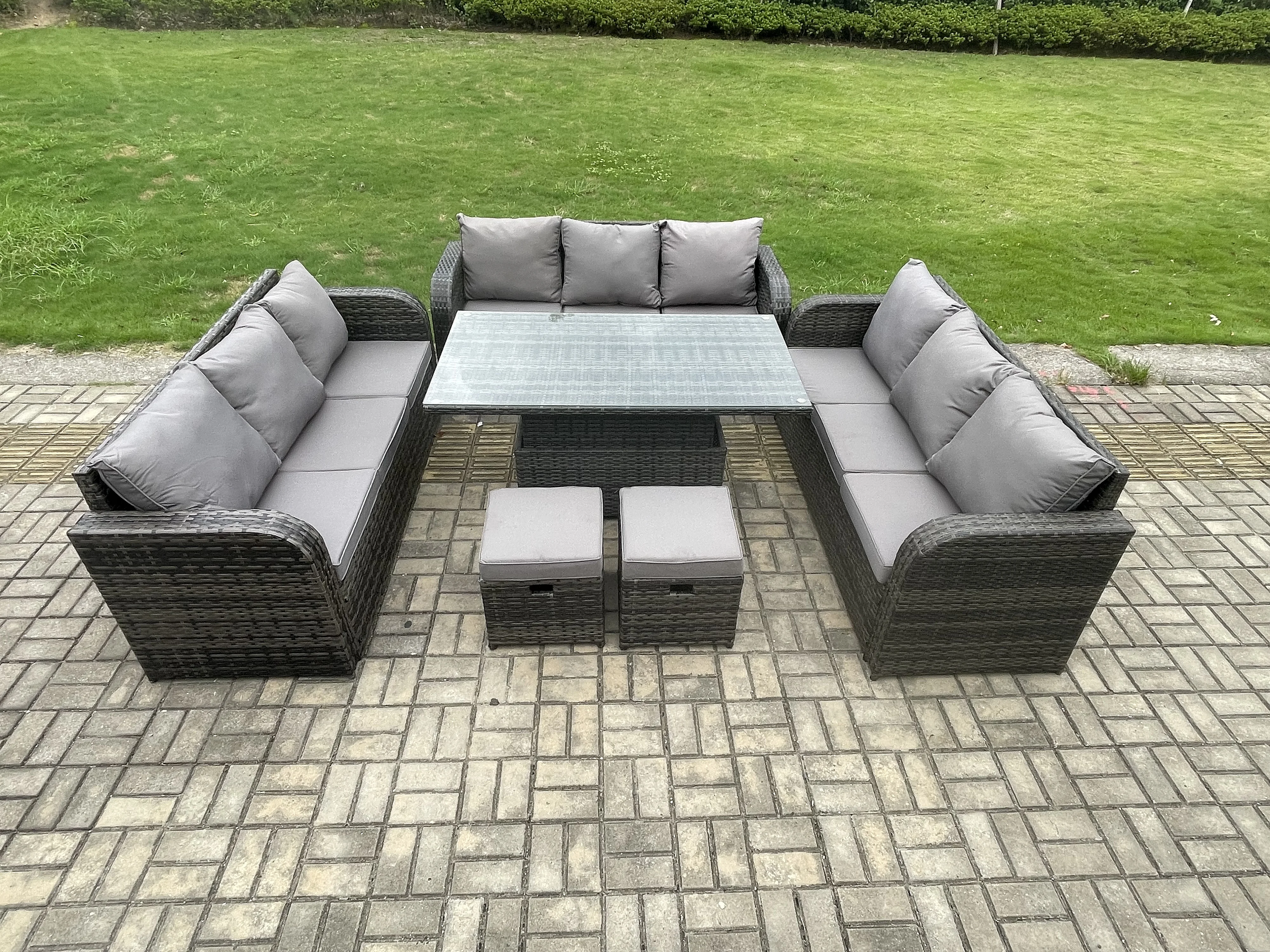 Mobilier À Dîner De Jardin ave Table à manger réglable en hauteur 3 Canapé 2 Tabourets Mélange gris foncé