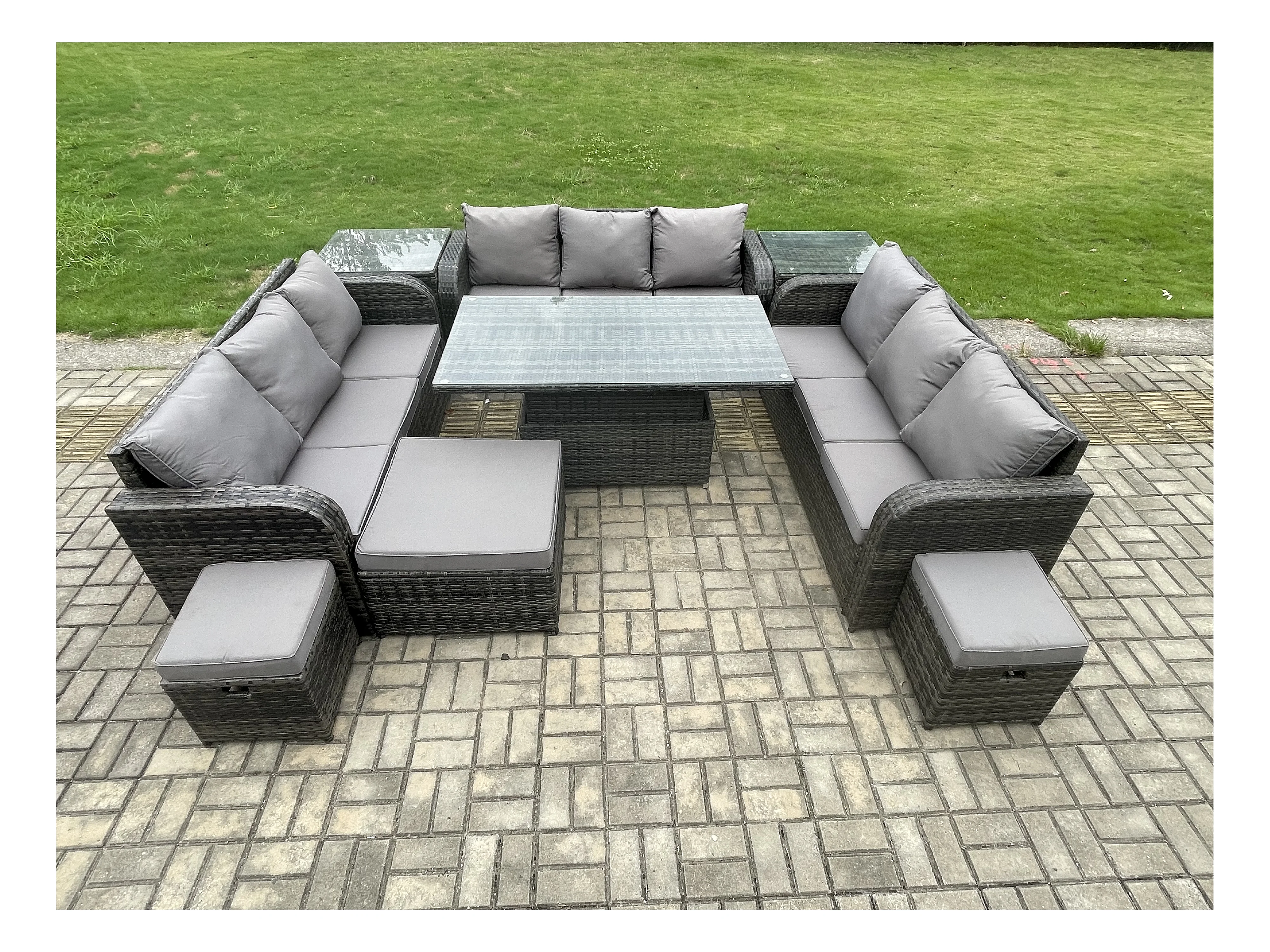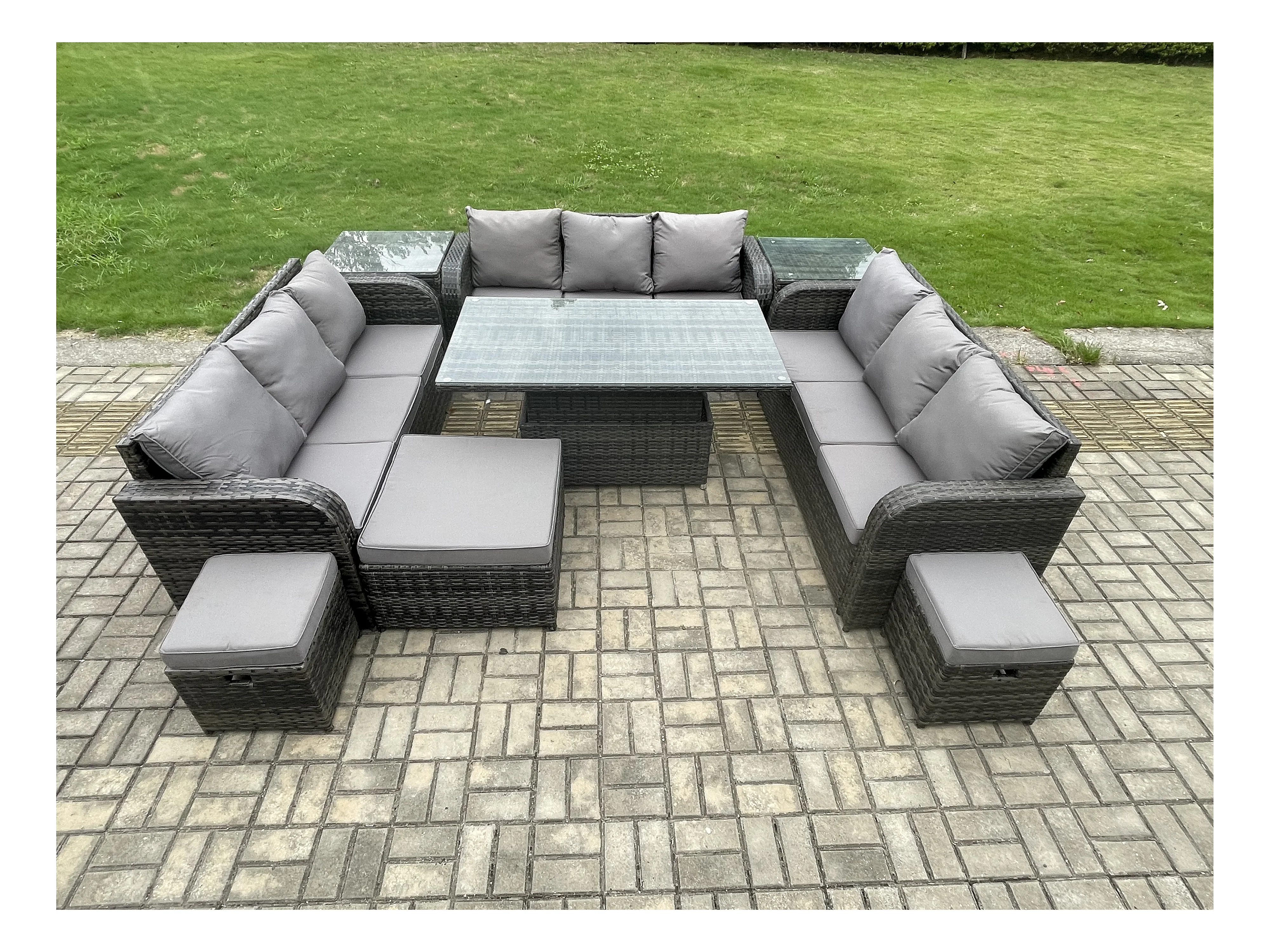Mobilier À Dîner De Jardin ave Table à manger réglable en hauteur 3 Canapé 3 Tabourets 2 Table d'appoint Mélange gris foncé