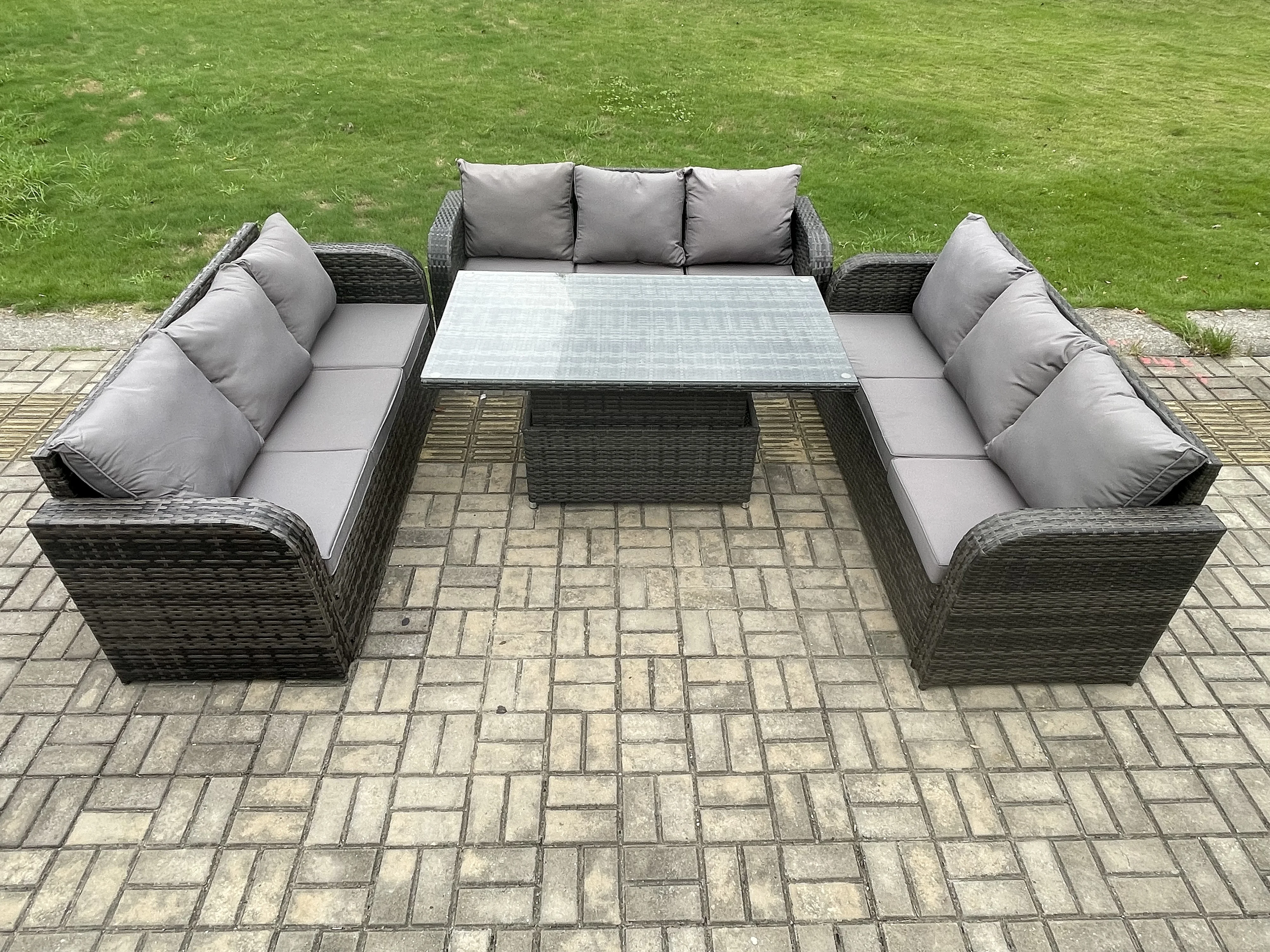 Mobilier À Dîner De Jardin ave Table à manger réglable en hauteur 3 Canapé Mélange gris foncé