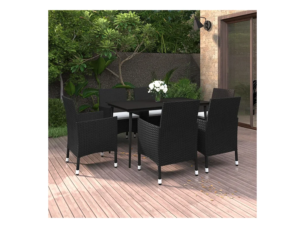 Mobilier à dîner de jardin coussins 7 pcs Résine tressée Verre