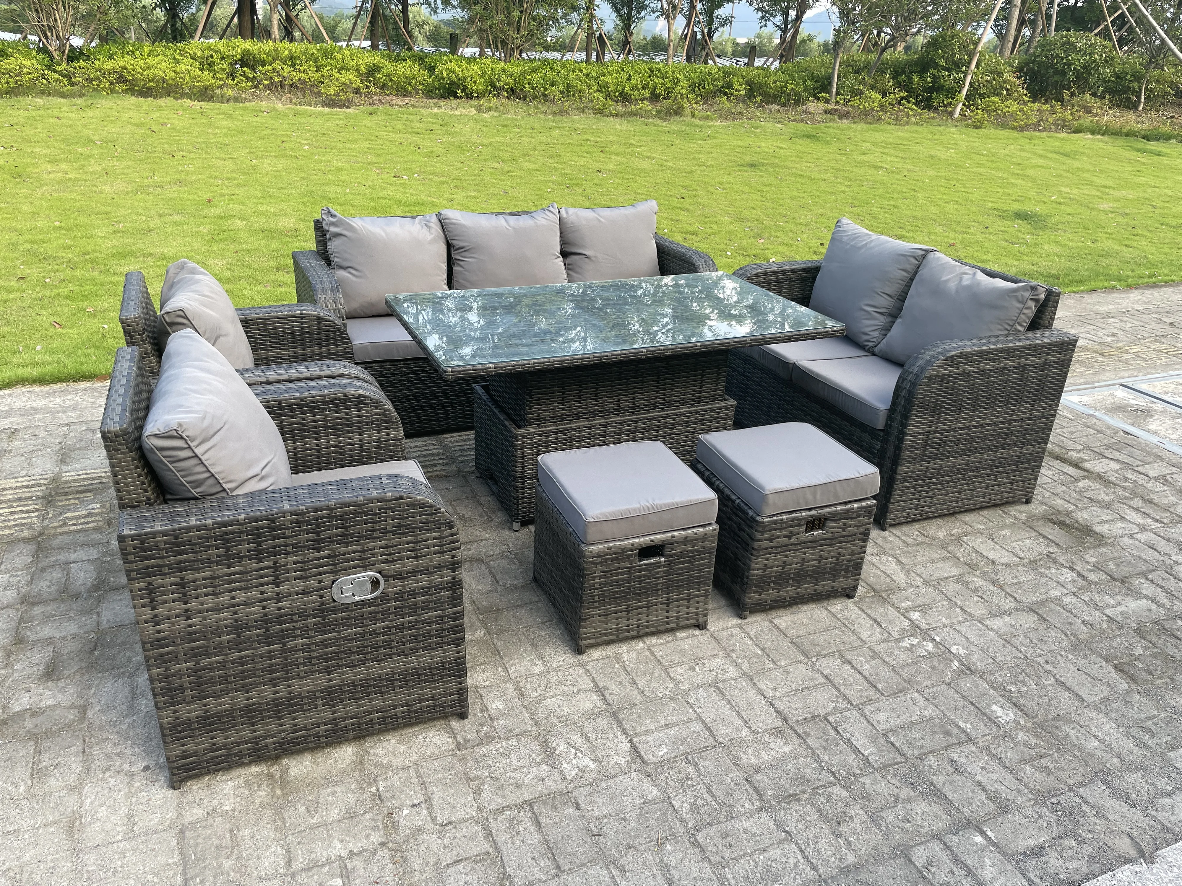 Mobilier À Dîner De Jardin en rotin ave Canapé Chaises inclinable Canapé d'amour Table à manger réglable en hauteur Tabourets Mélange gris foncé