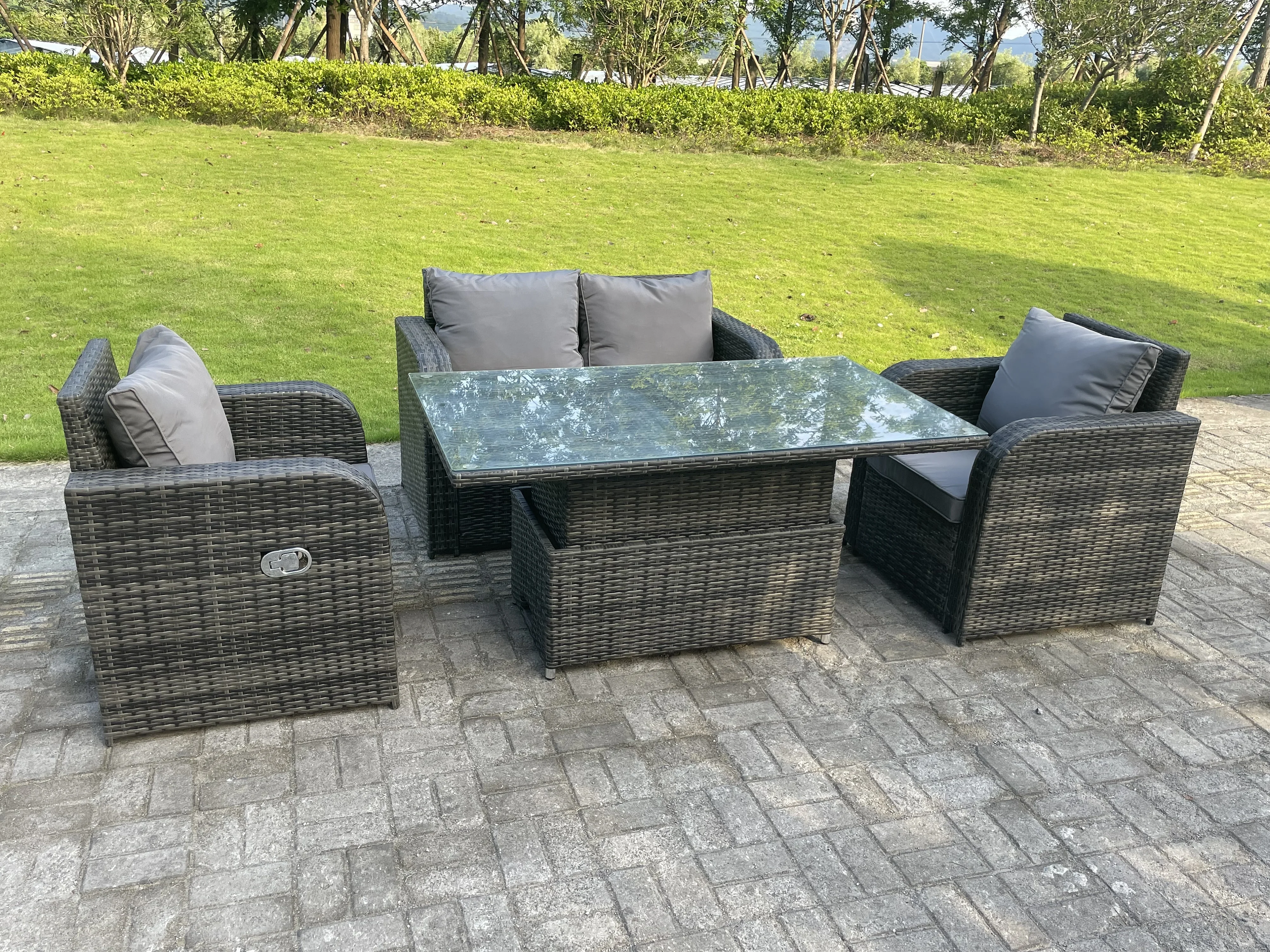 Mobilier À Dîner De Jardin en rotin ave Canapé inclinable Table à manger réglable en hauteur Mélange gris foncé