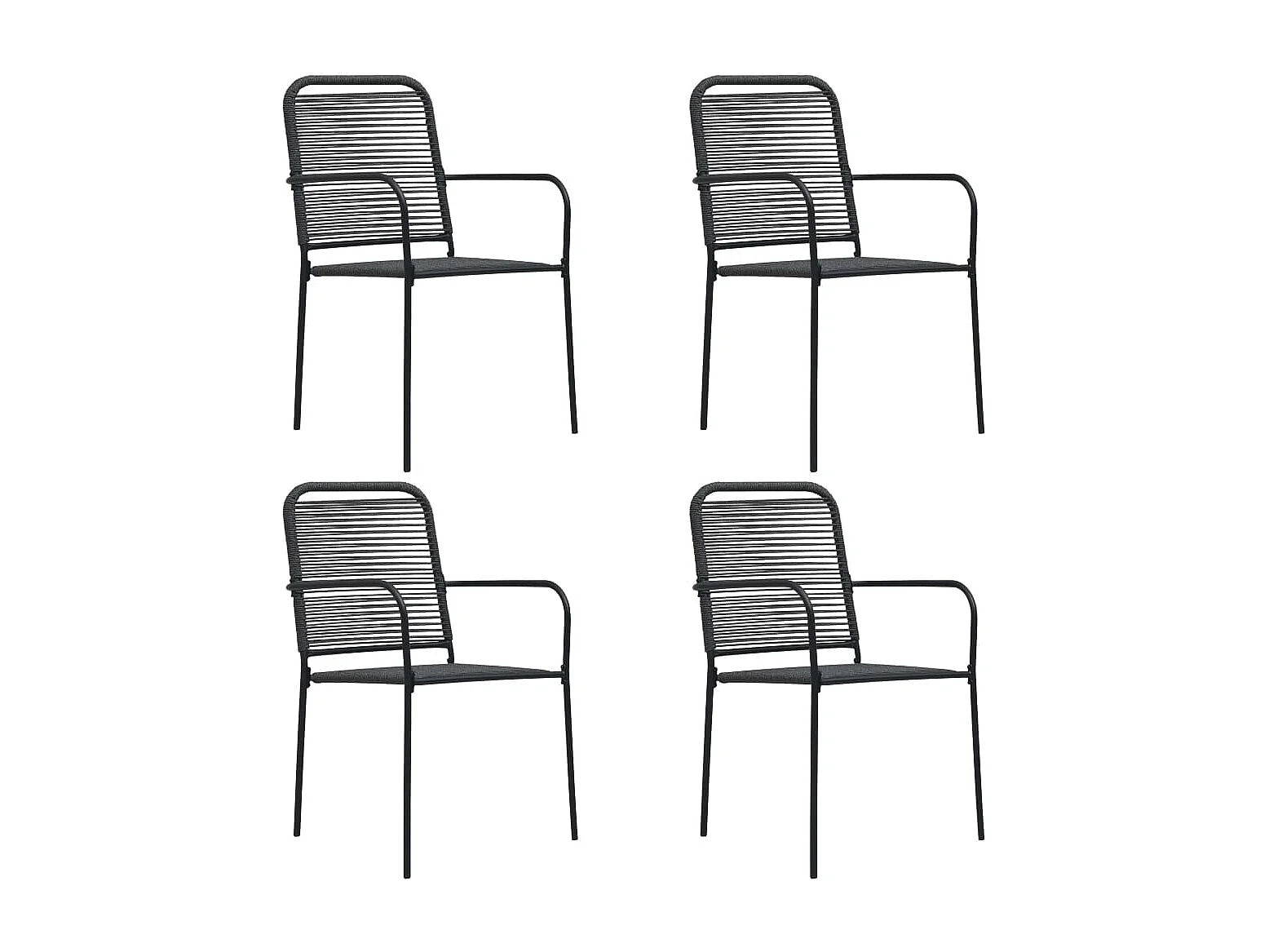 Ensemble à manger de jardin 5 pcs Corde en coton et acier Noir