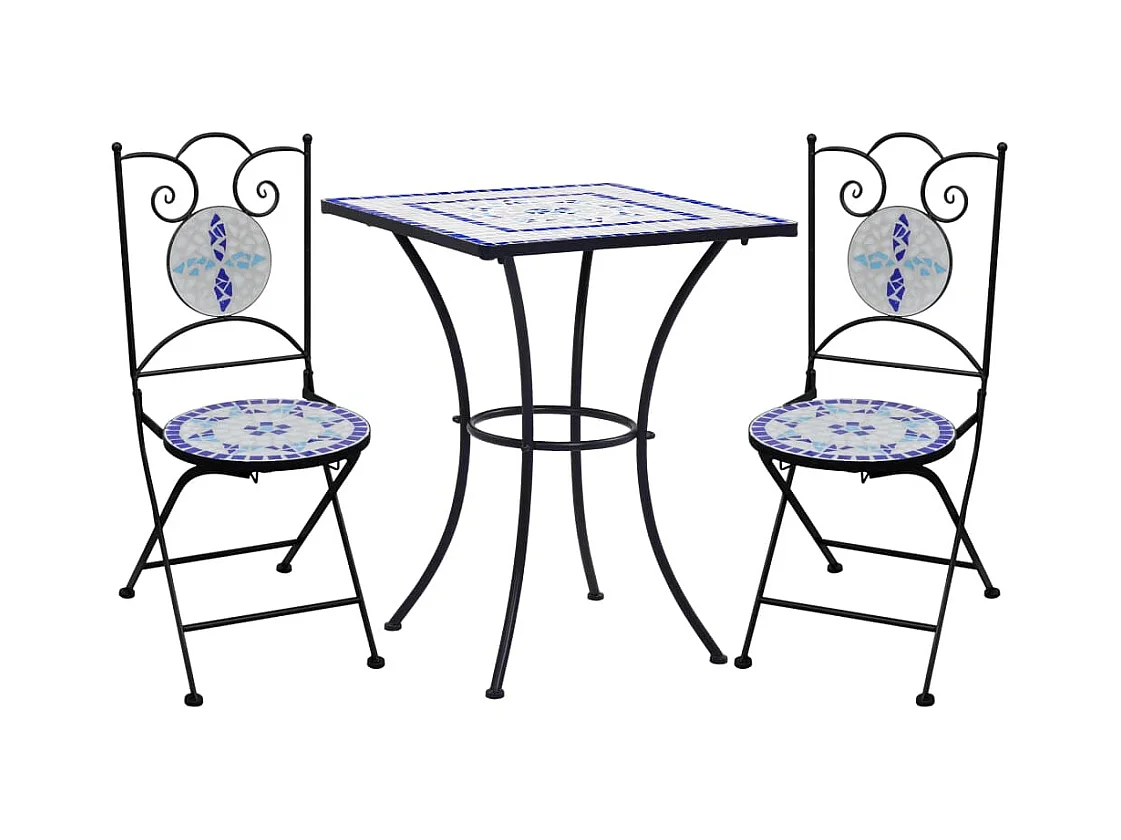 Mobilier de bistro 3 pcs mosaïque Carreau céramique Bleu Blanc FR71144