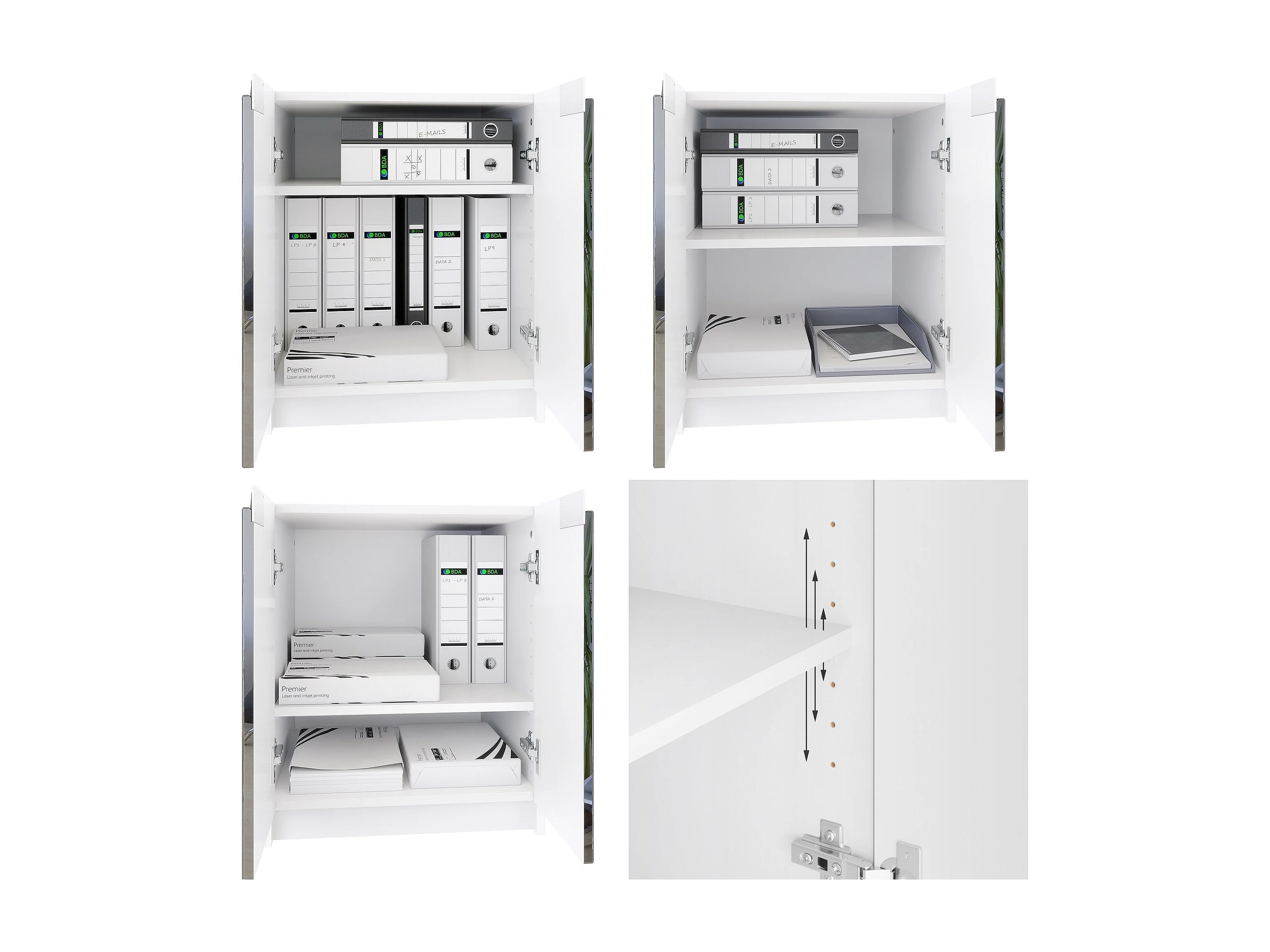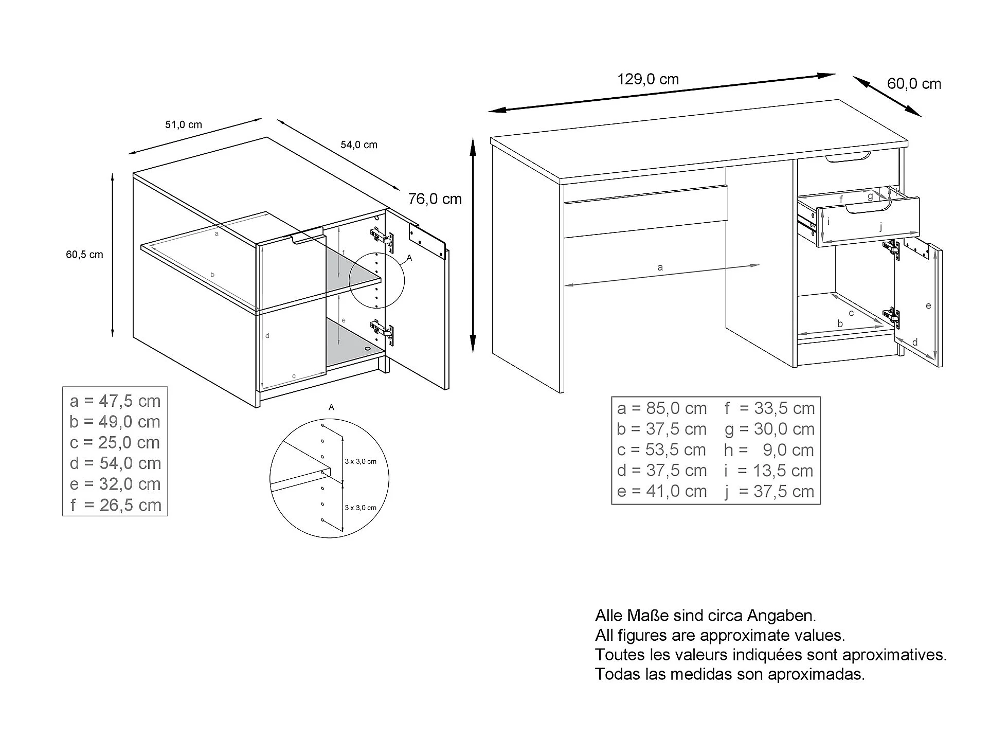 Mobilier de bureau ensemble bureau à domicile Paris, fabriqué en Allemagne avec meuble pour imprimante et bureau, blanc mat / chêne nature