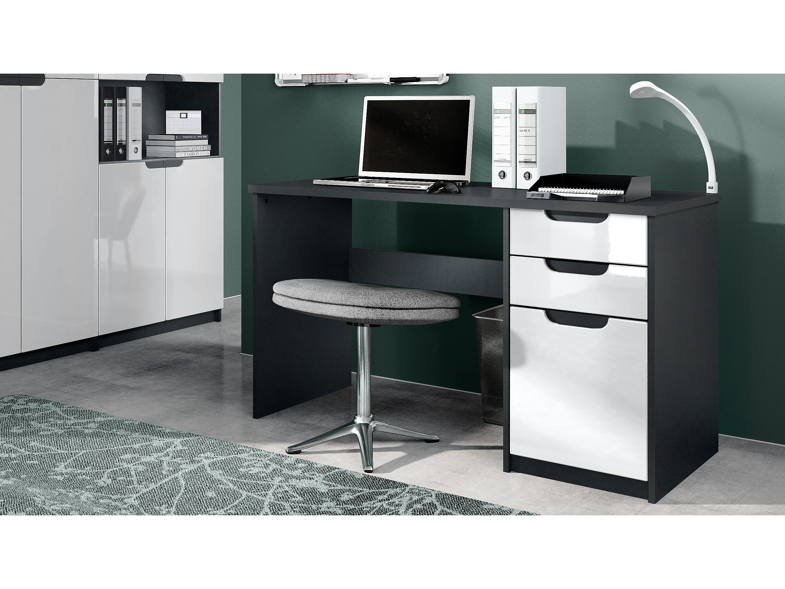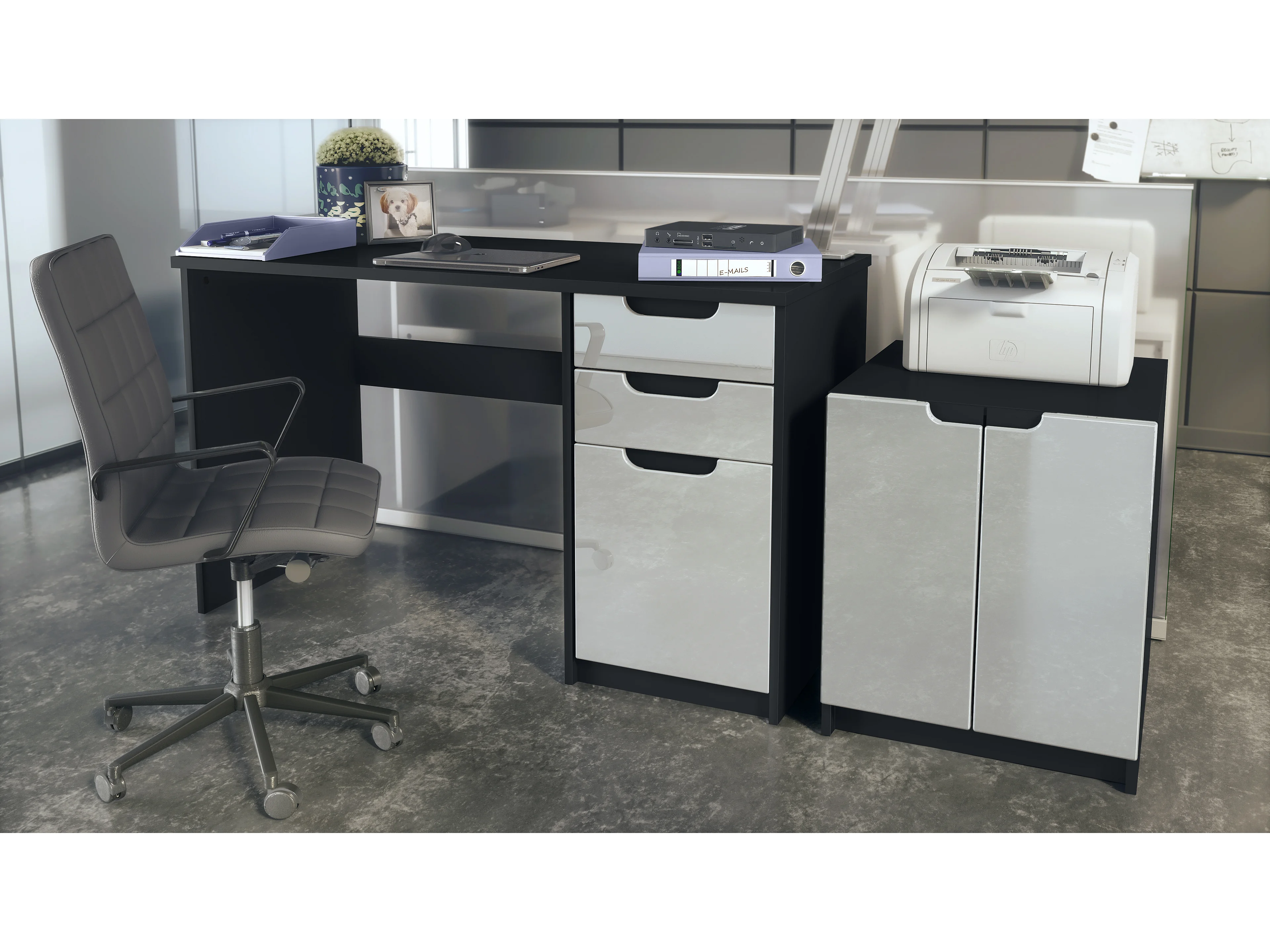 Mobilier de bureau ensemble bureau à domicile Paris, fabriqué en Allemagne avec meuble pour imprimante et bureau, noir mat / blanc haute brillance