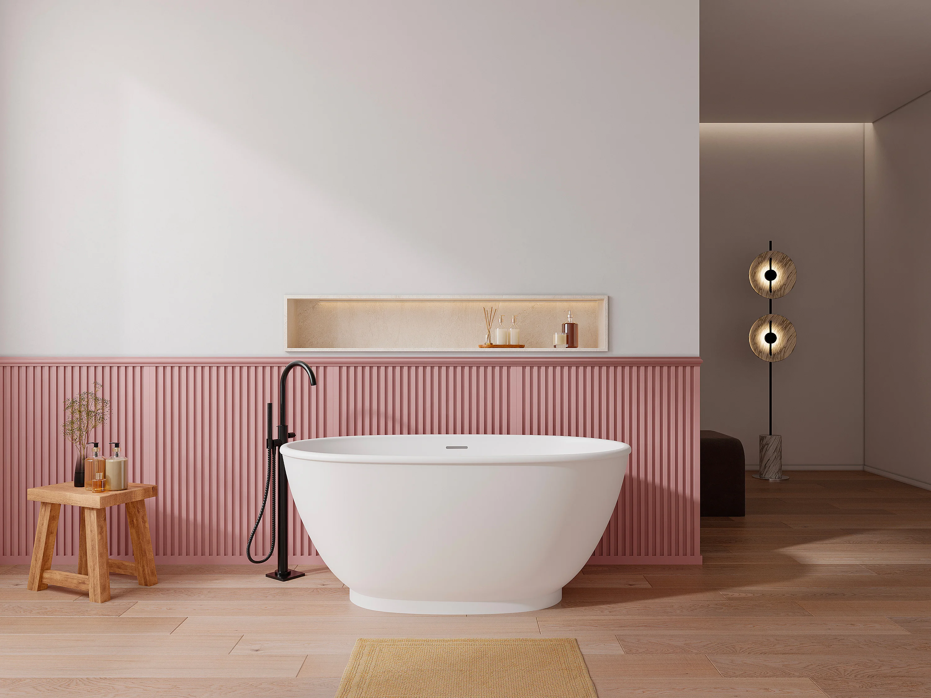 Baignoire îlot ovale - 186 L - 130 x 70 x 57 cm - Blanc brillant - Acrylique - MOBULA