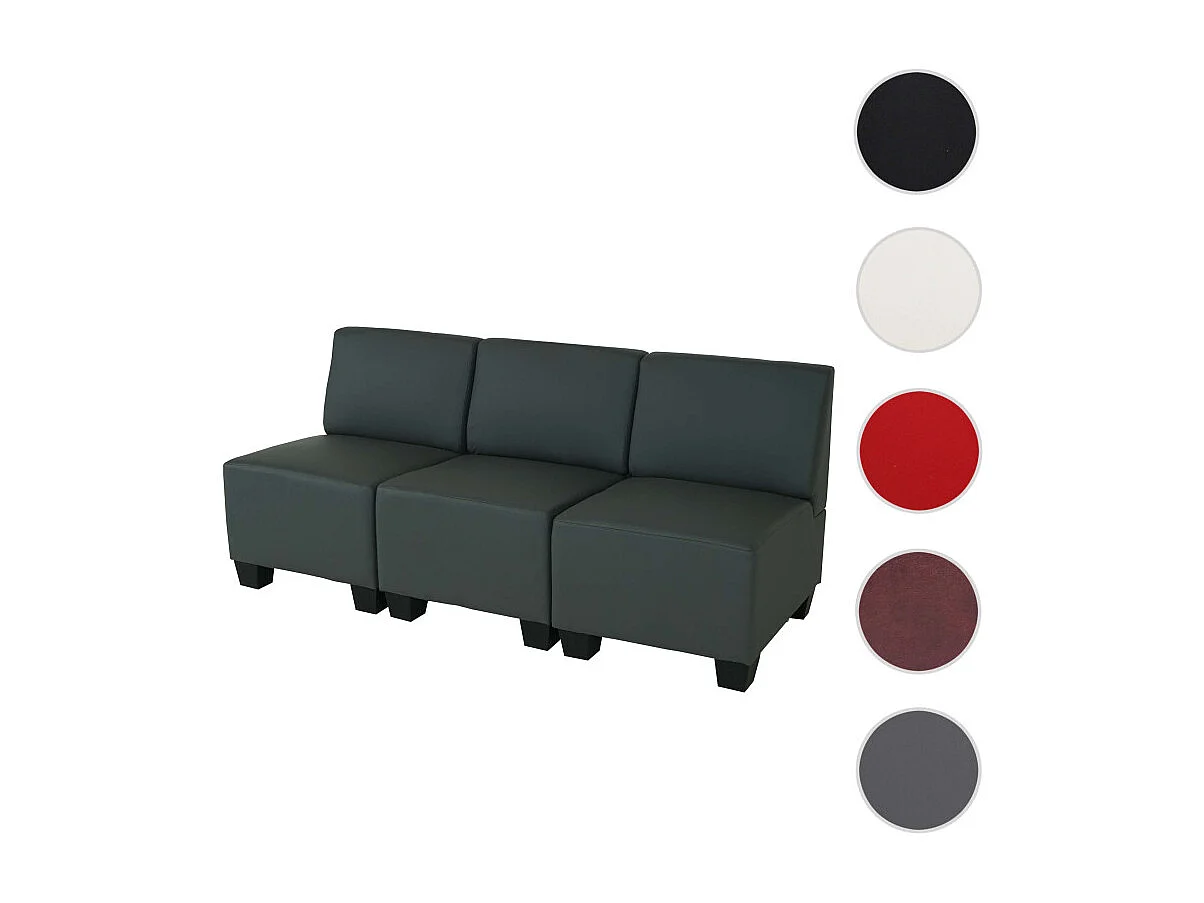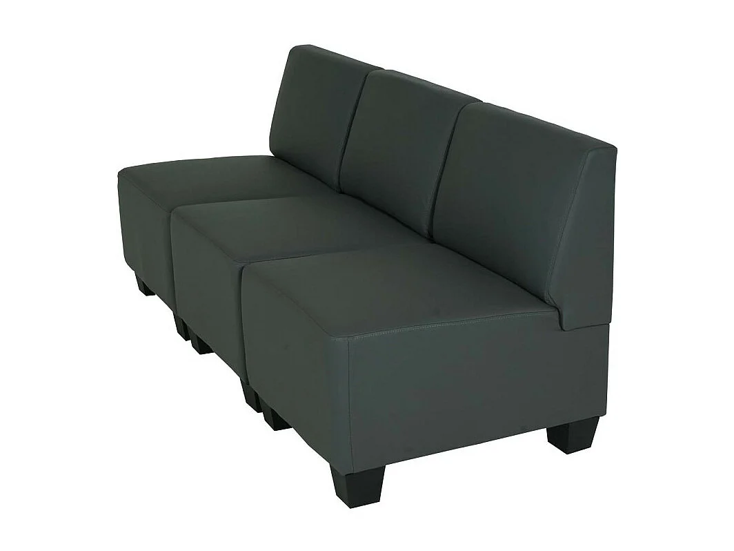 Modular Canapé 3 places Lyon, similicuir ~ gris foncé, sans accoudoirs