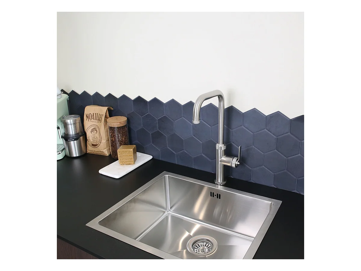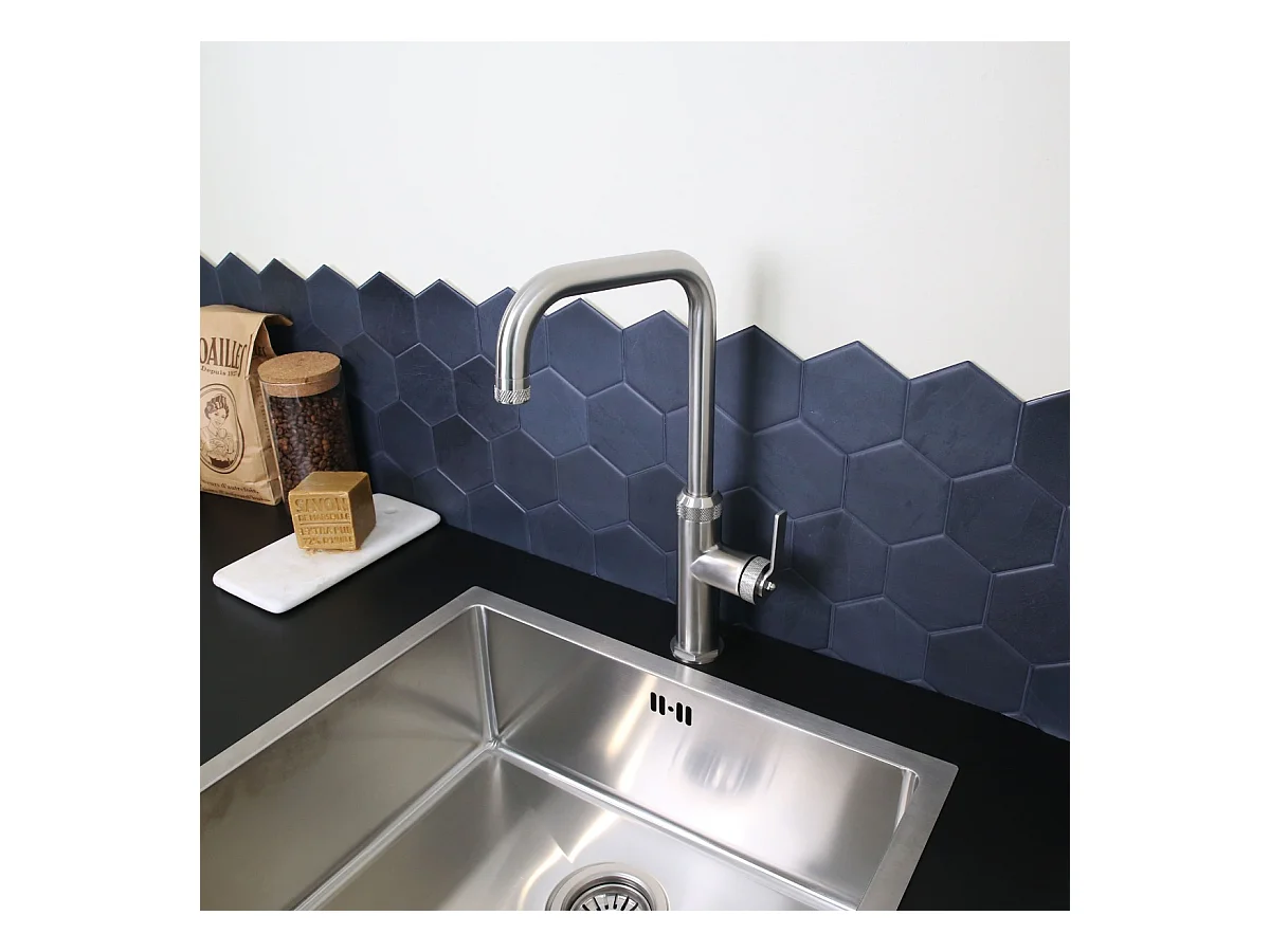 Esseloki mitigeur évier façon inox et bec bleu - Essebagno