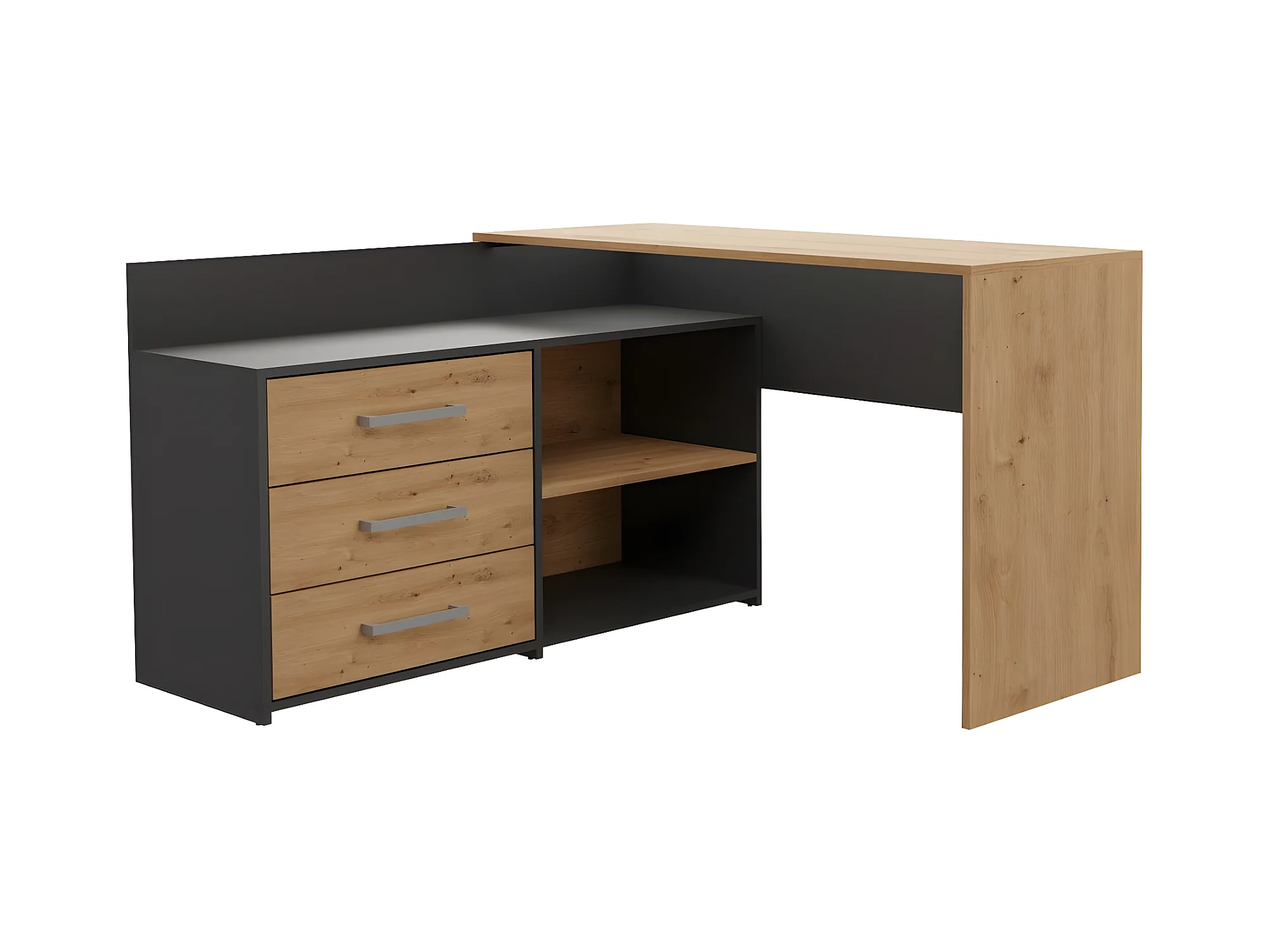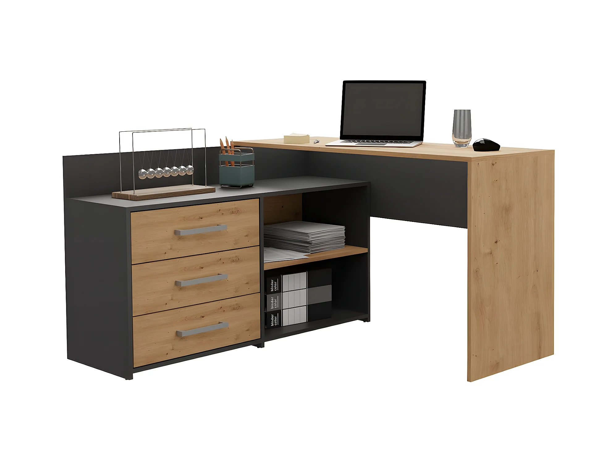 MOLINE - Bureau d'angle avec rangement - 3 tiroirs + 2 etagères - 120x50x76 cm - Bureau d'ordinateur