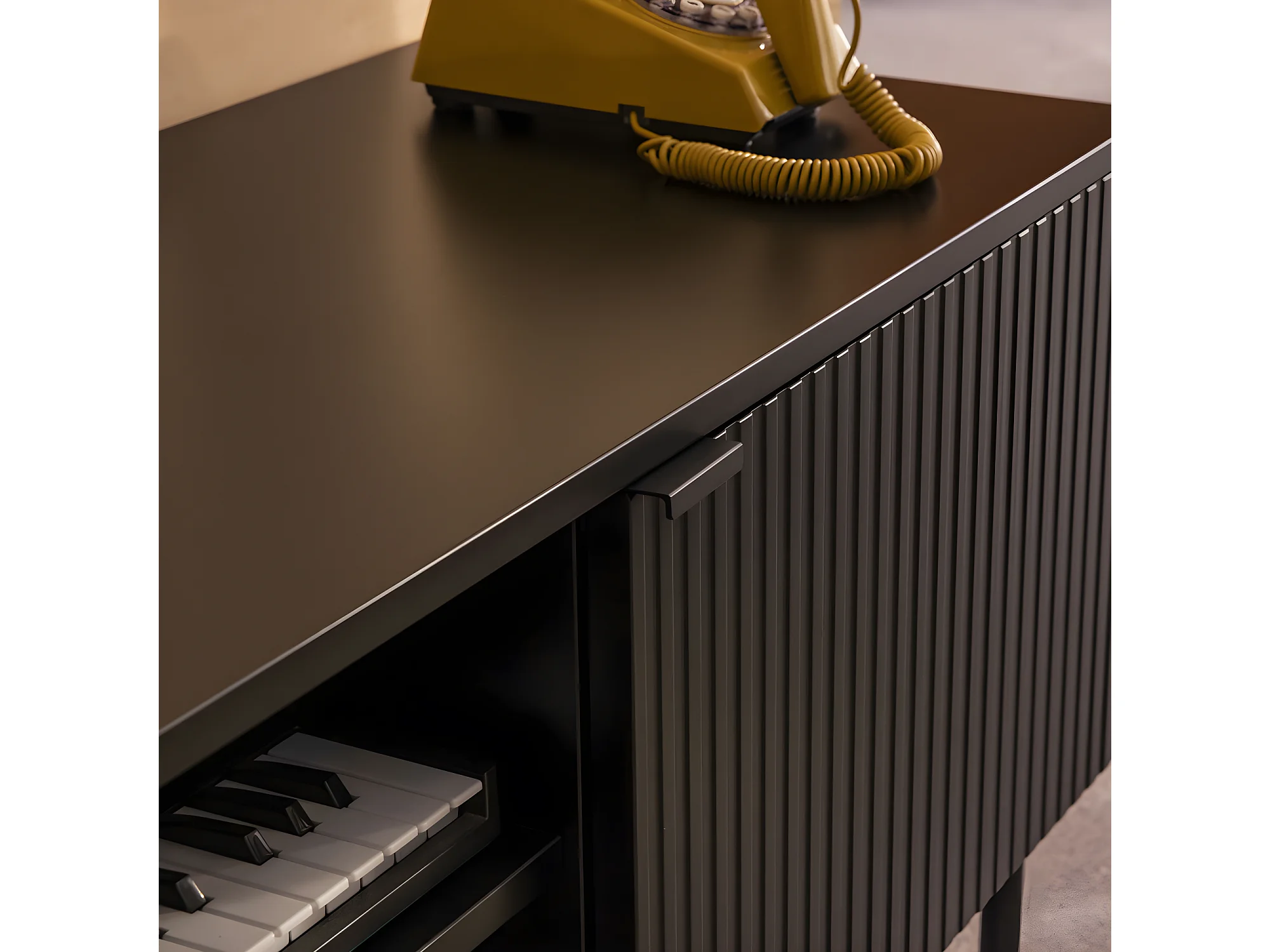 Molly - Meuble tv 2 portes, 2 niches en bois et métal L150cm - Noir