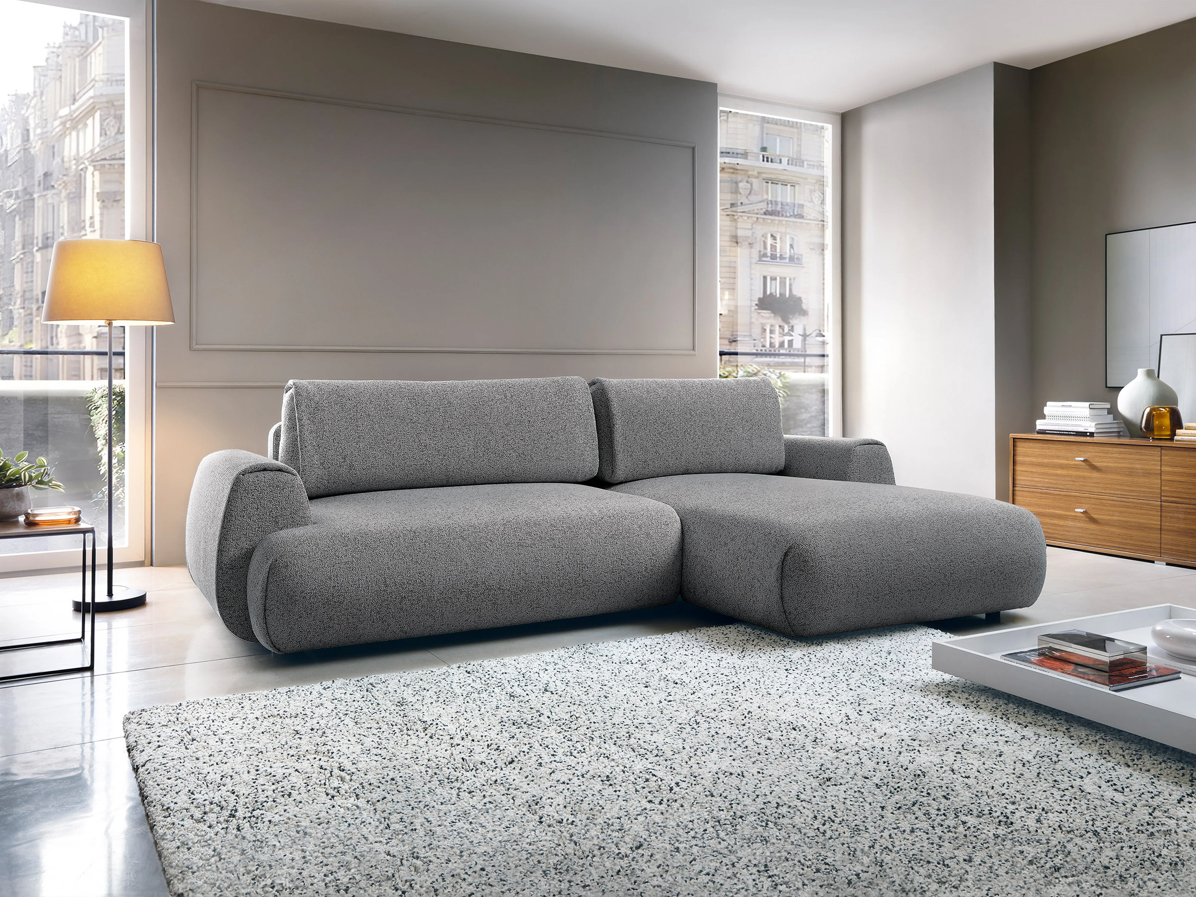 Canapé d'angle droit convertible en tissu chiné gris MONELIA