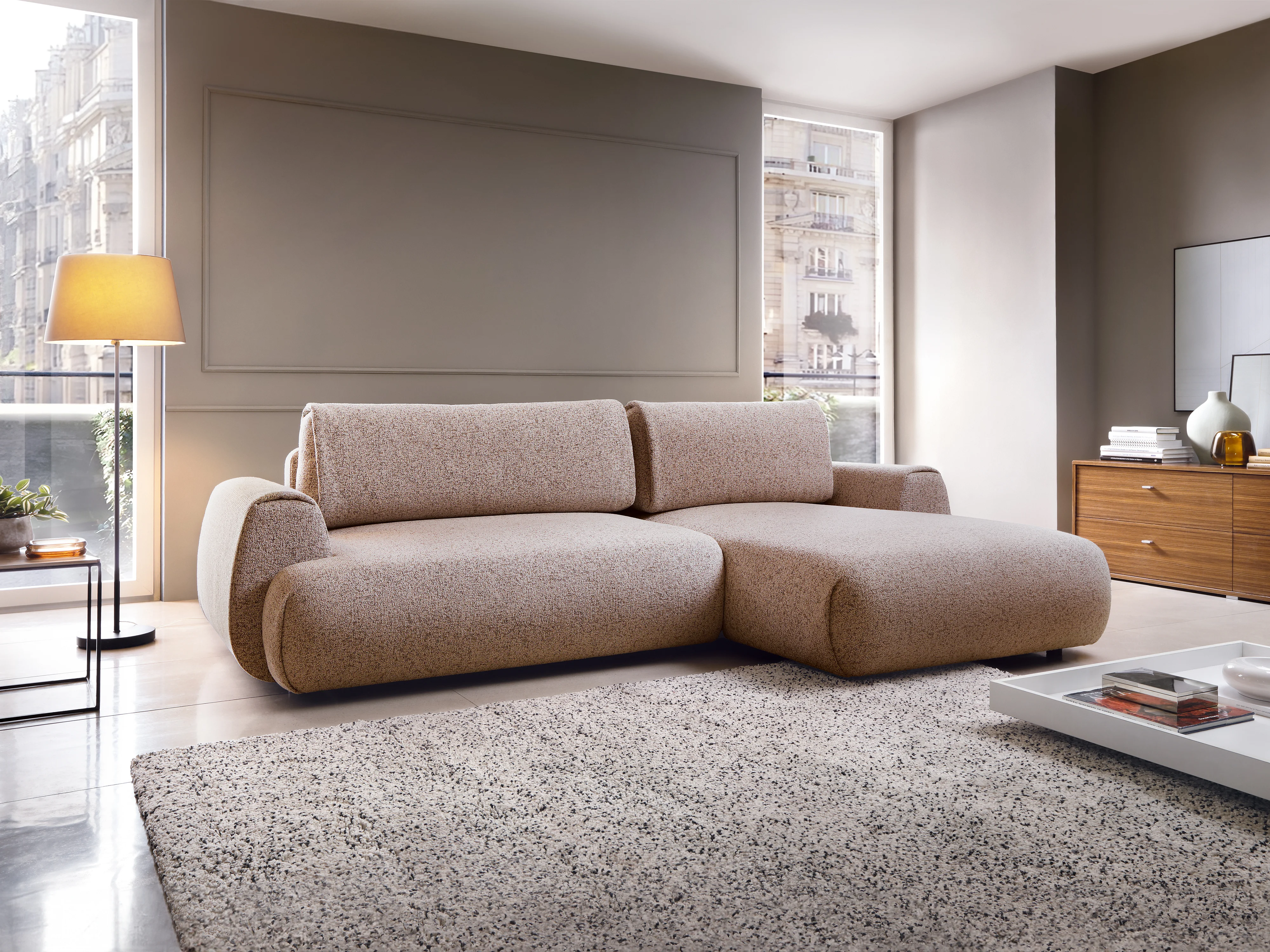 Canapé d'angle droit convertible en tissu chiné rose MONELIA