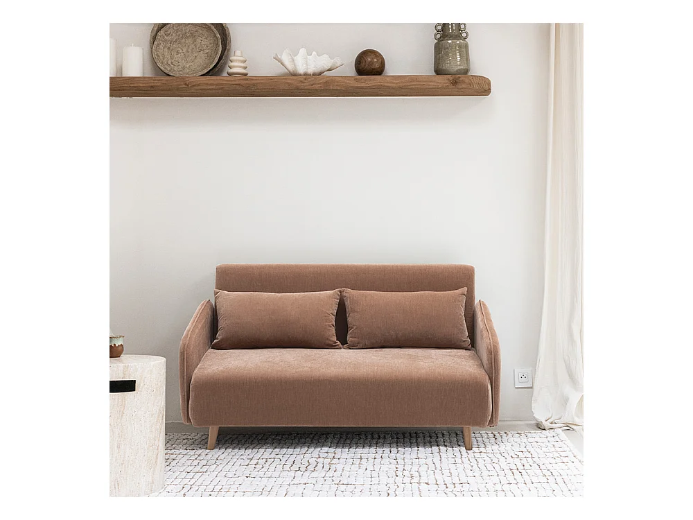 Monica - Canapé convertible 2 places en tissu chenille L140cm - Rose blush