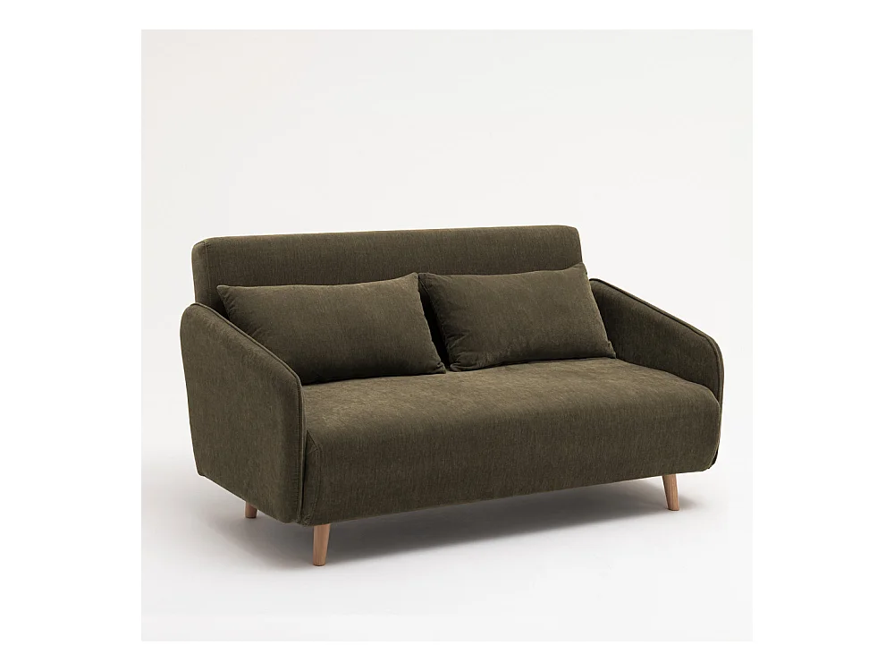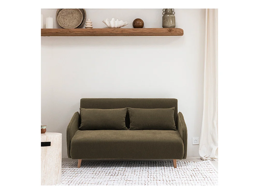 Monica - Canapé convertible 2 places en tissu chenille L140cm - Vert kaki