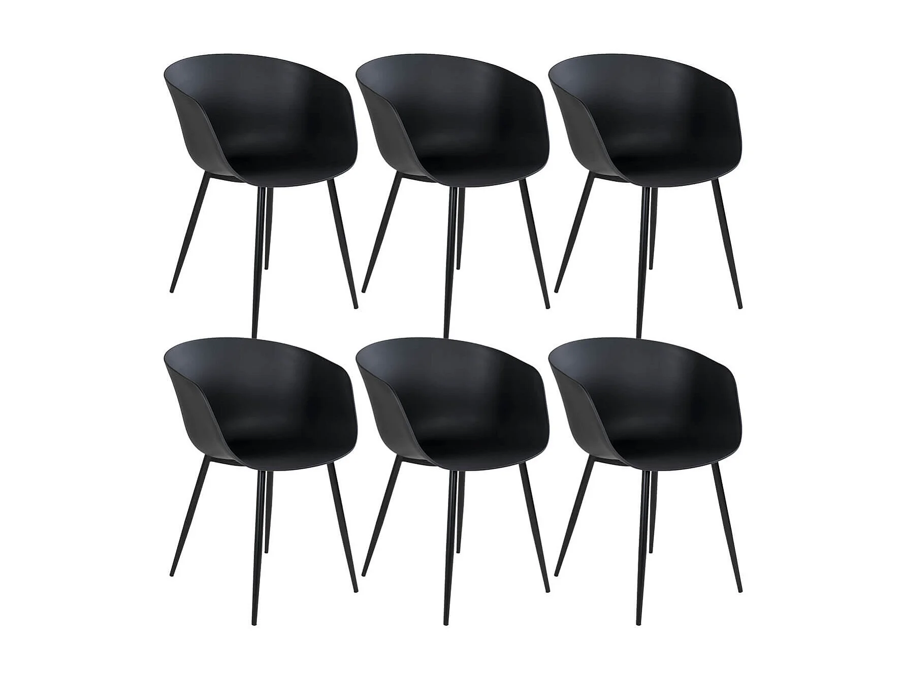 MONTANA - Lot de 6 Chaises PolyPropylène Noir et Pieds Acier