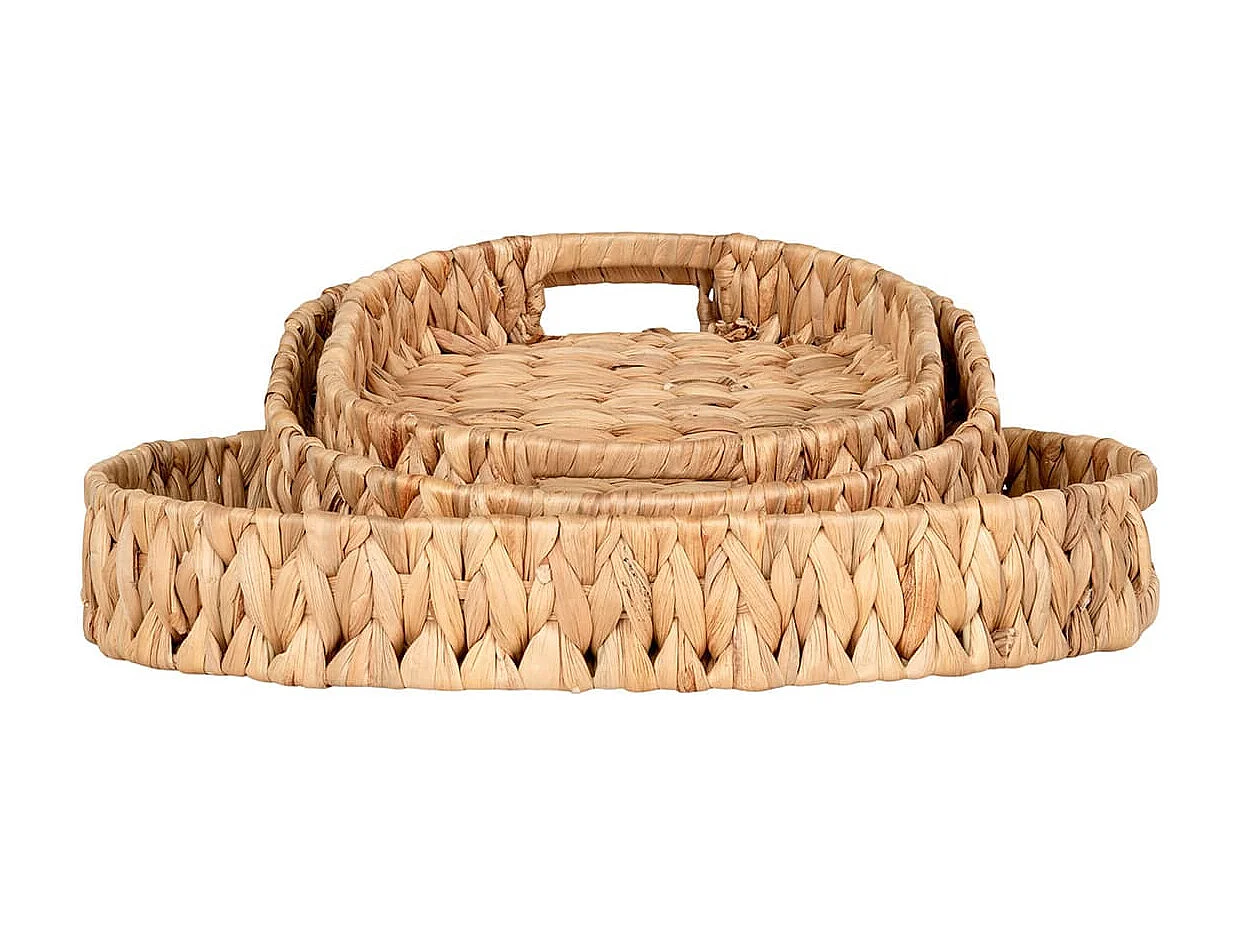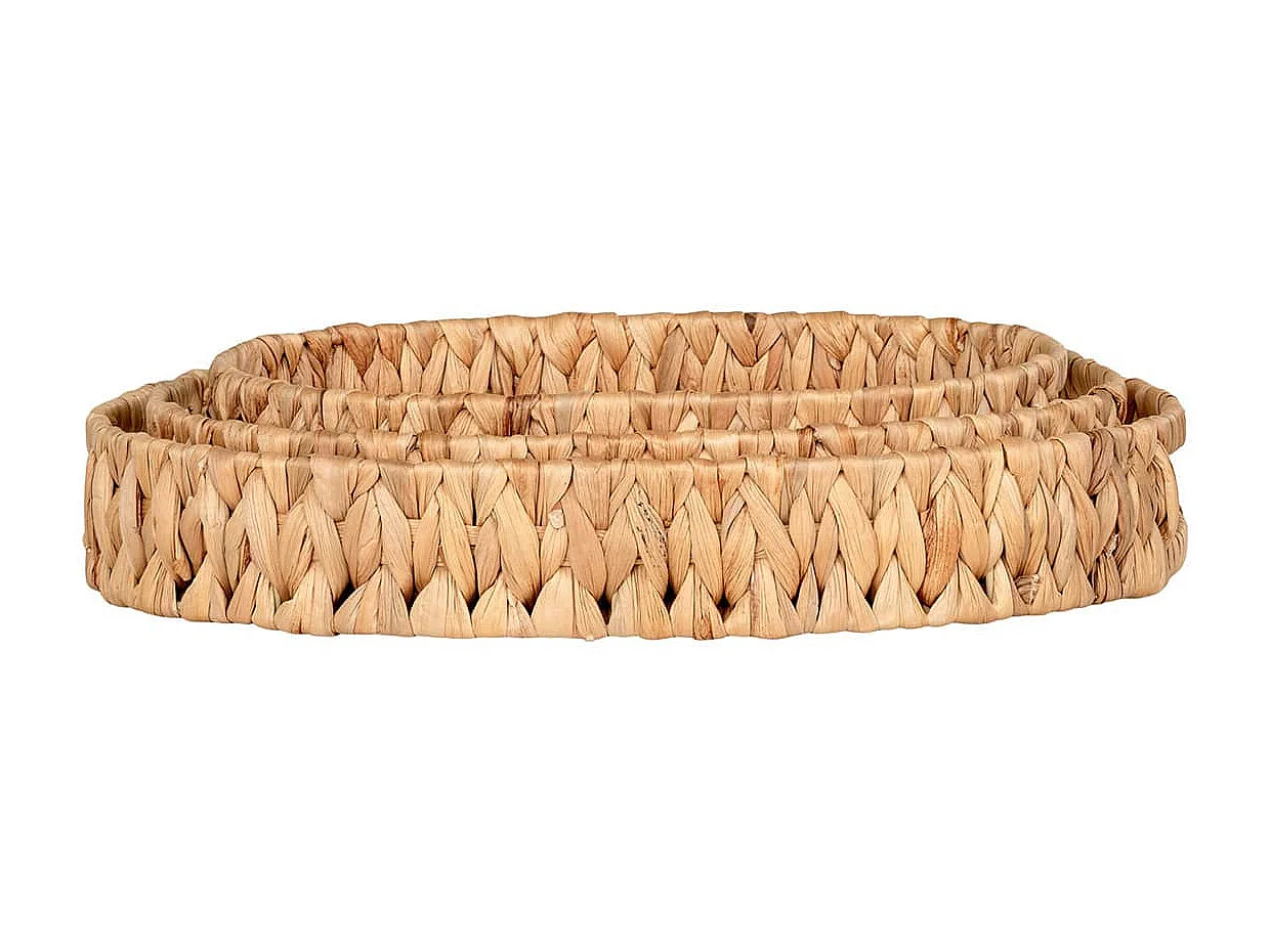 MOOREA - Lot de 3 Plateaux de Décoration Tressés en Jacinthe d'Eau Naturelle
