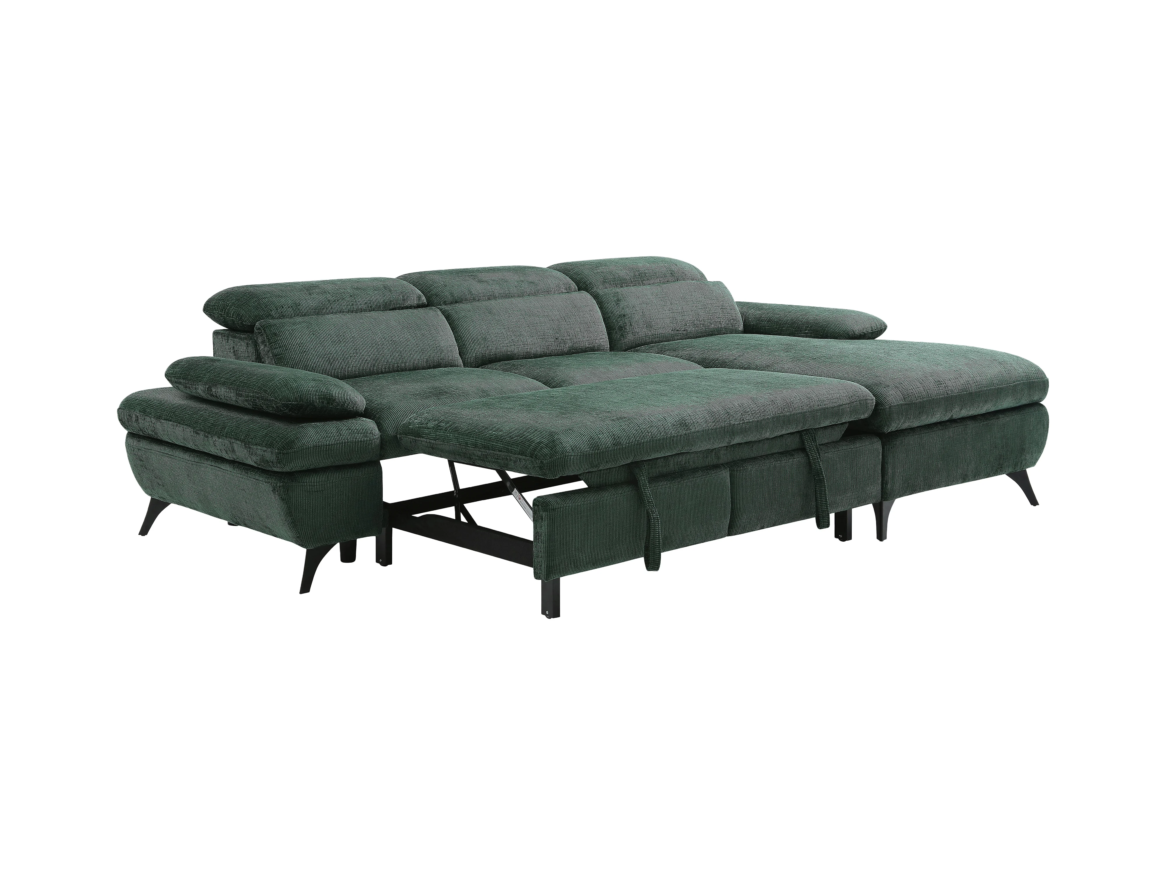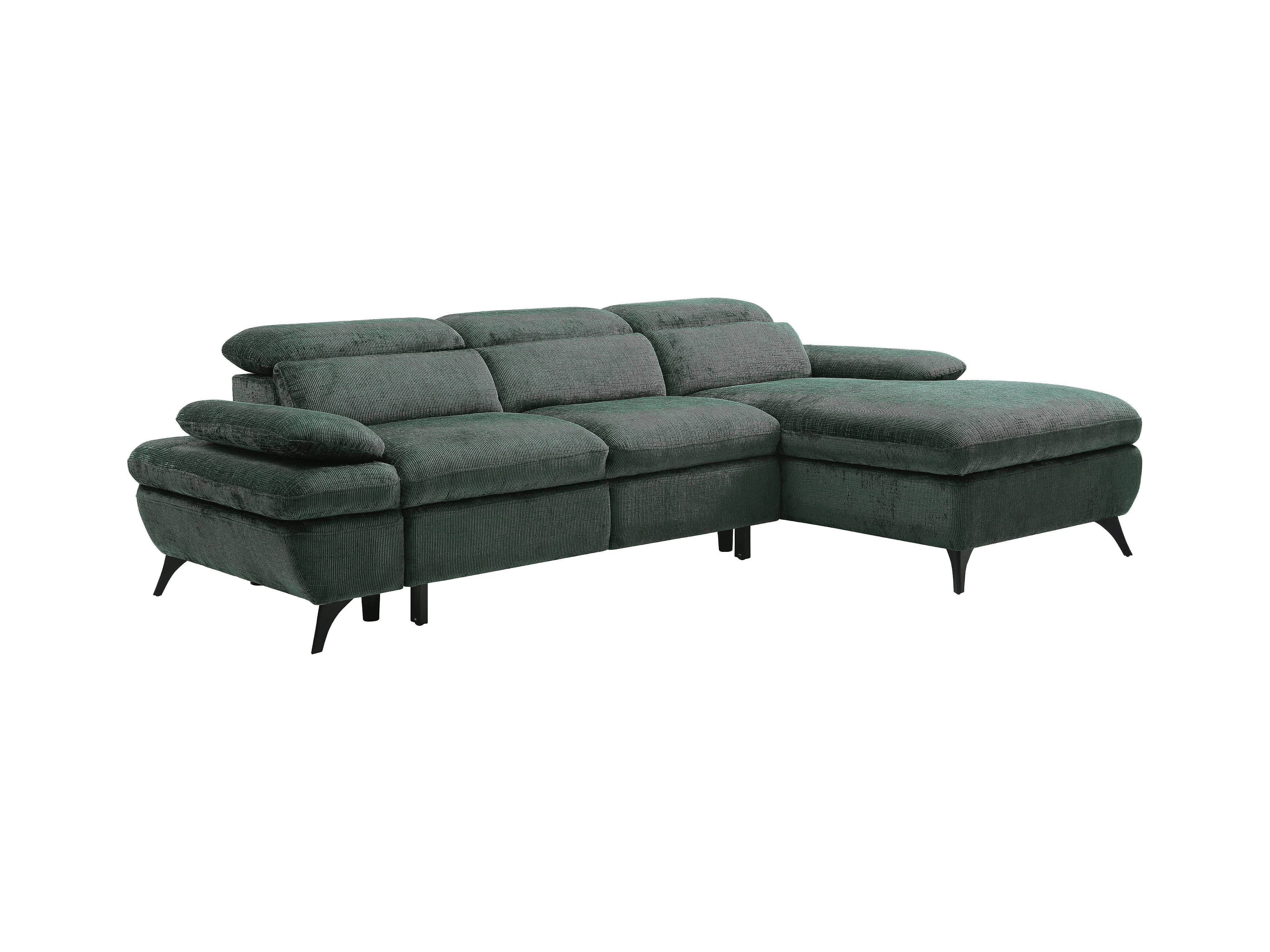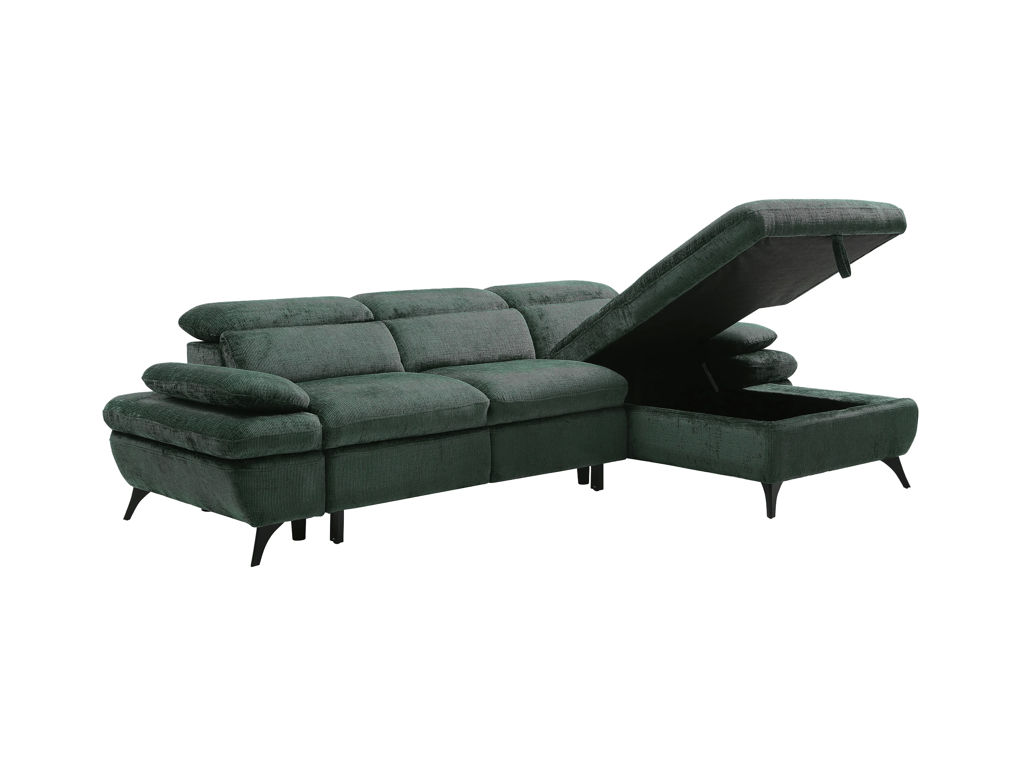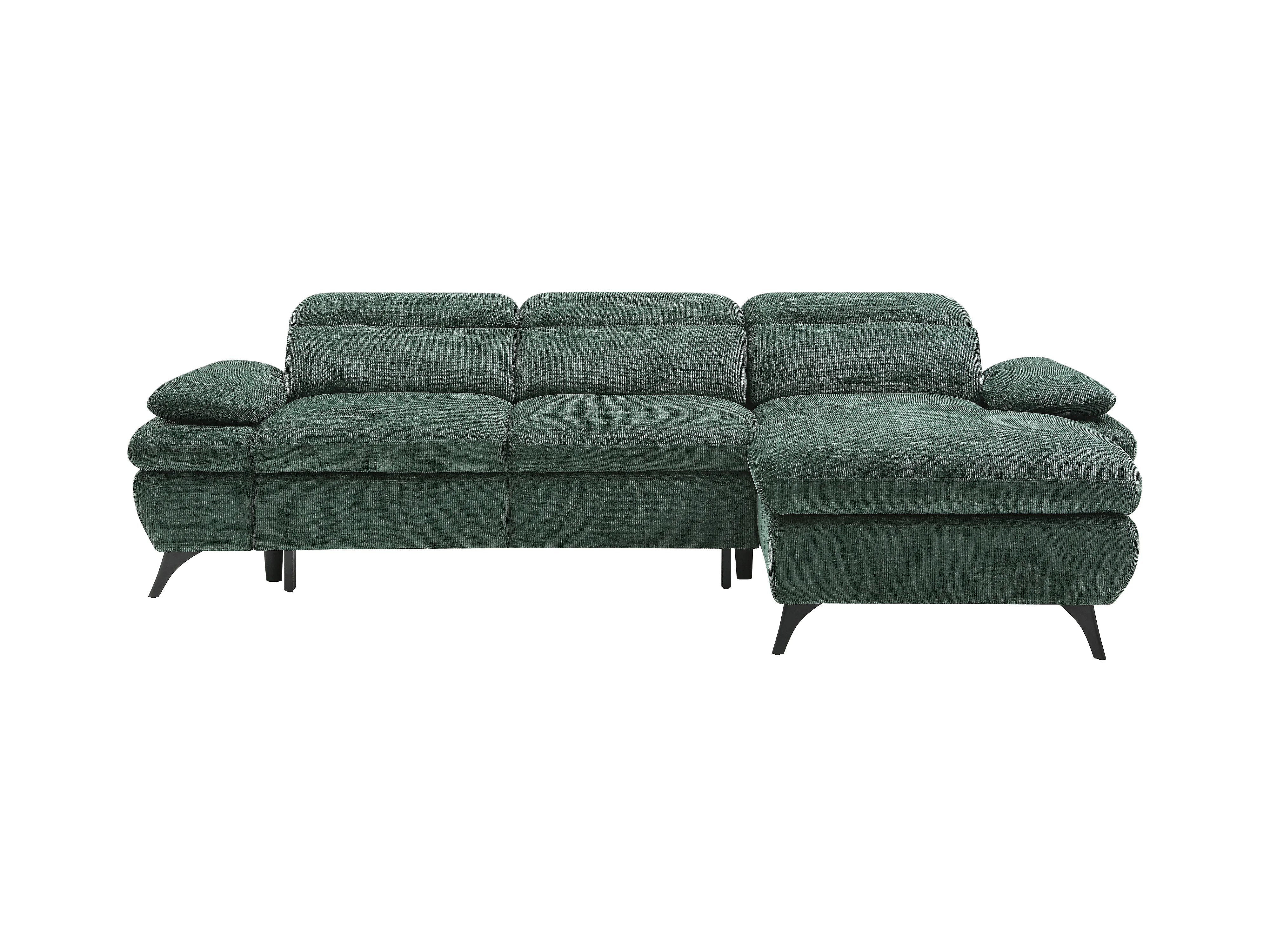 Canapé d'angle droit convertible en tissu texturé vert SURDELI