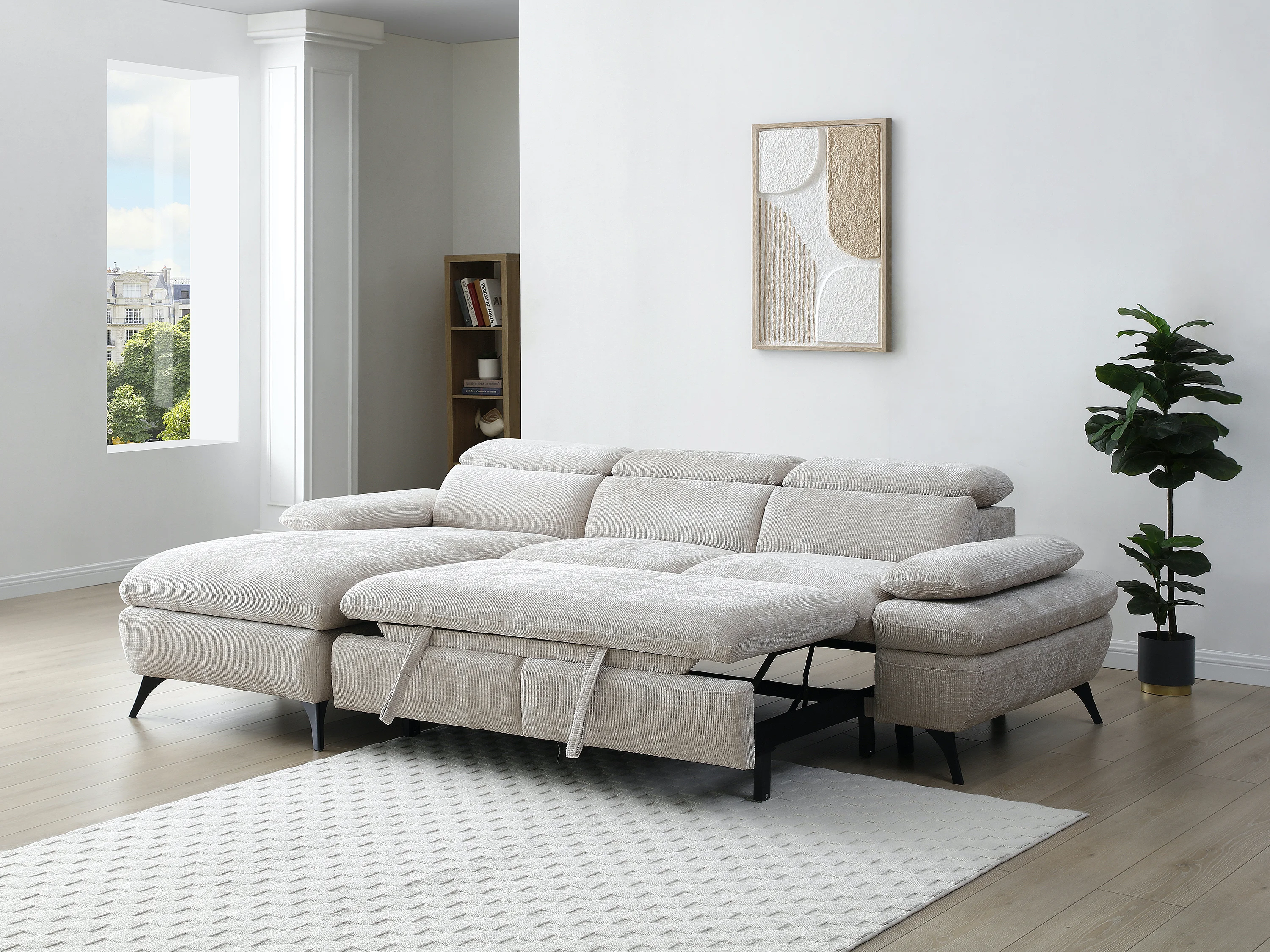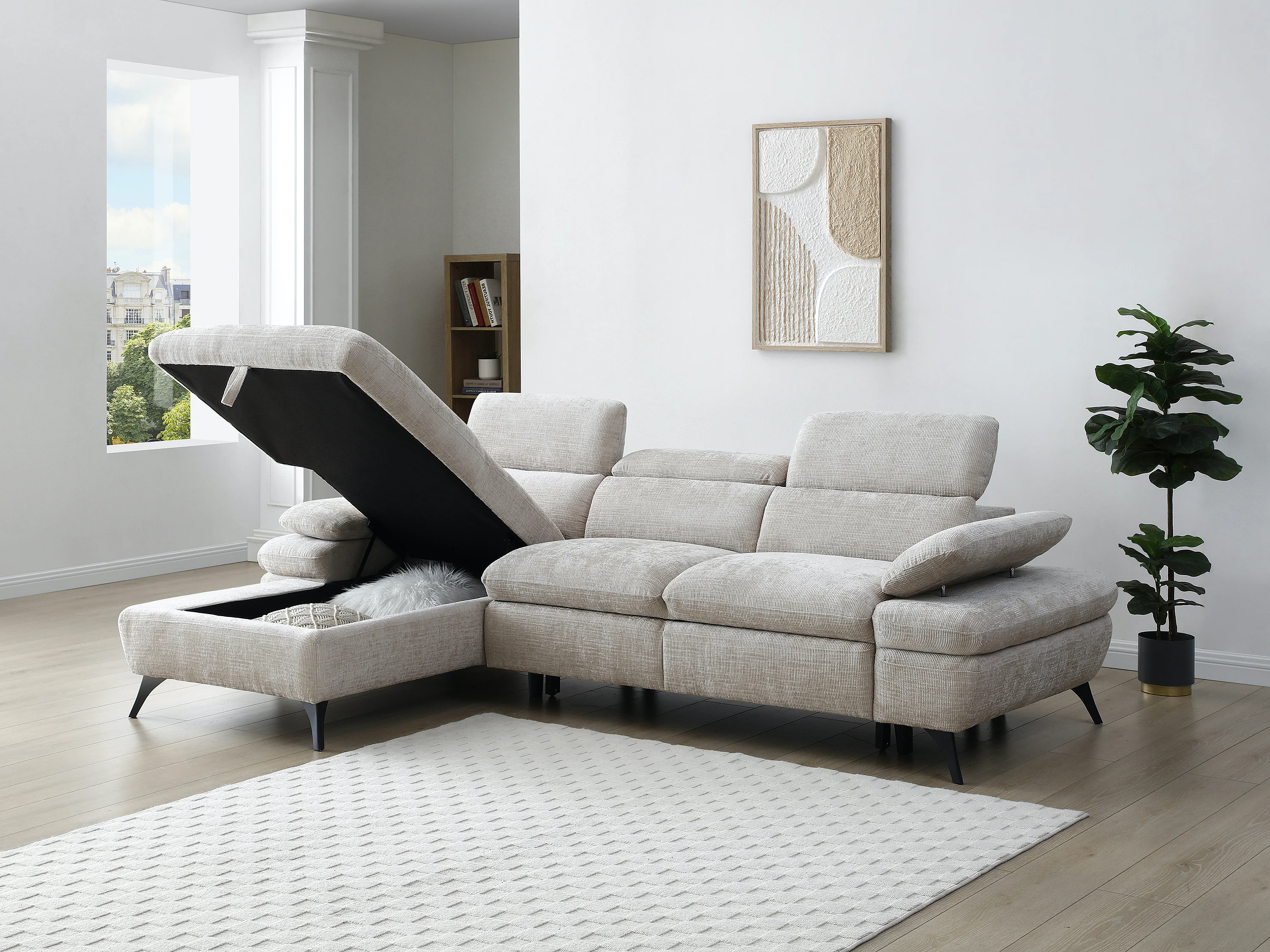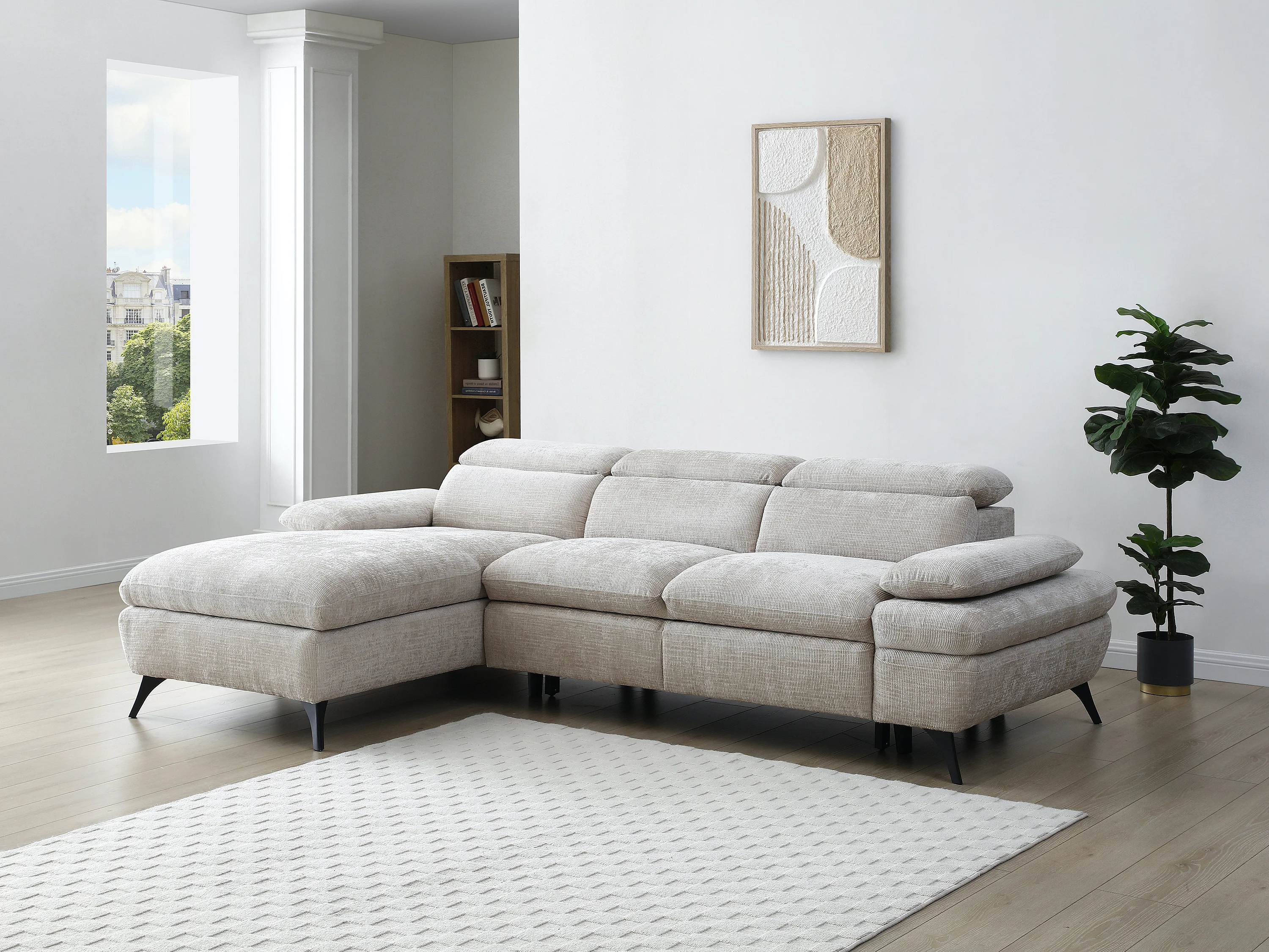 Canapé d'angle gauche convertible en tissu texturé beige SURDELI