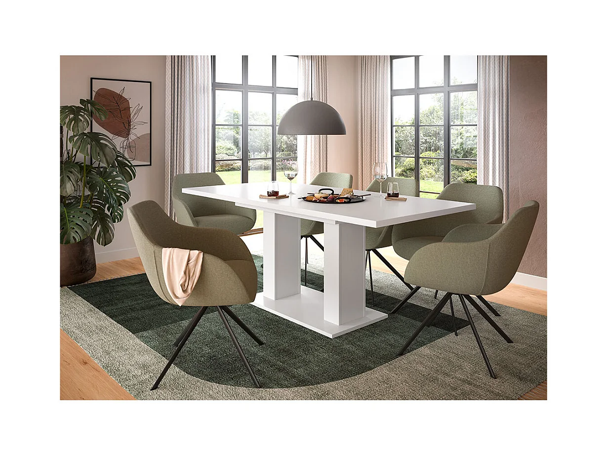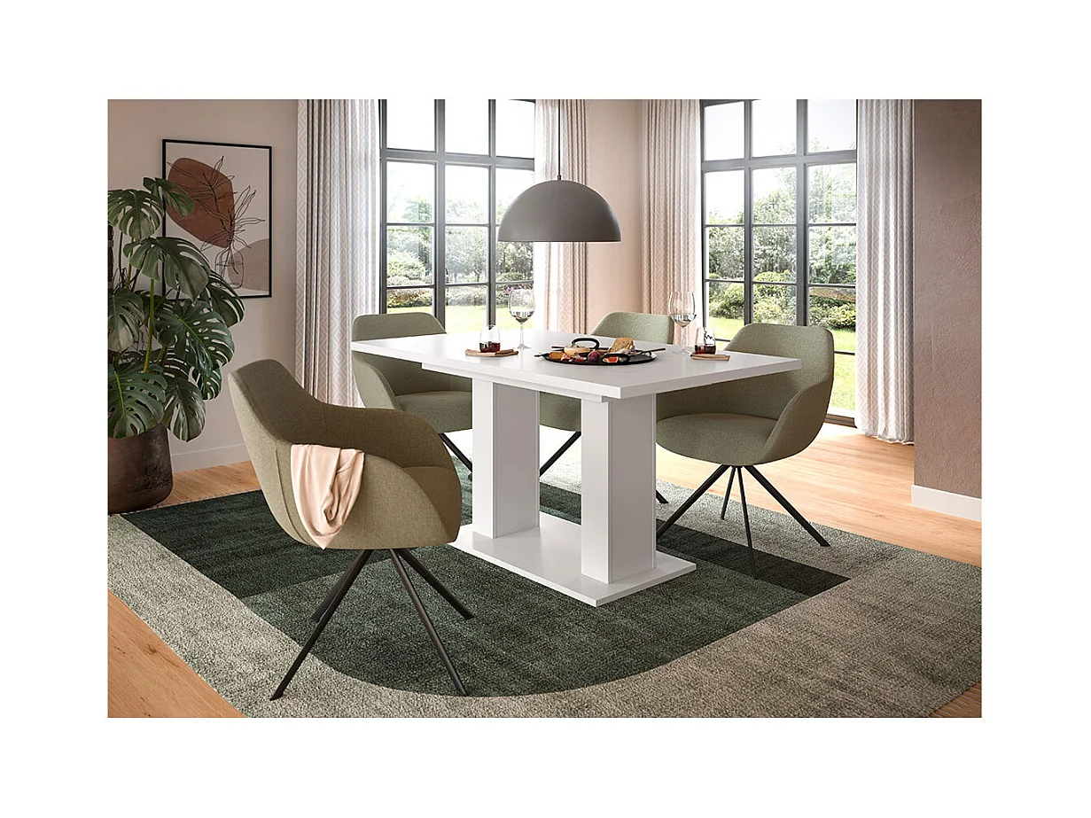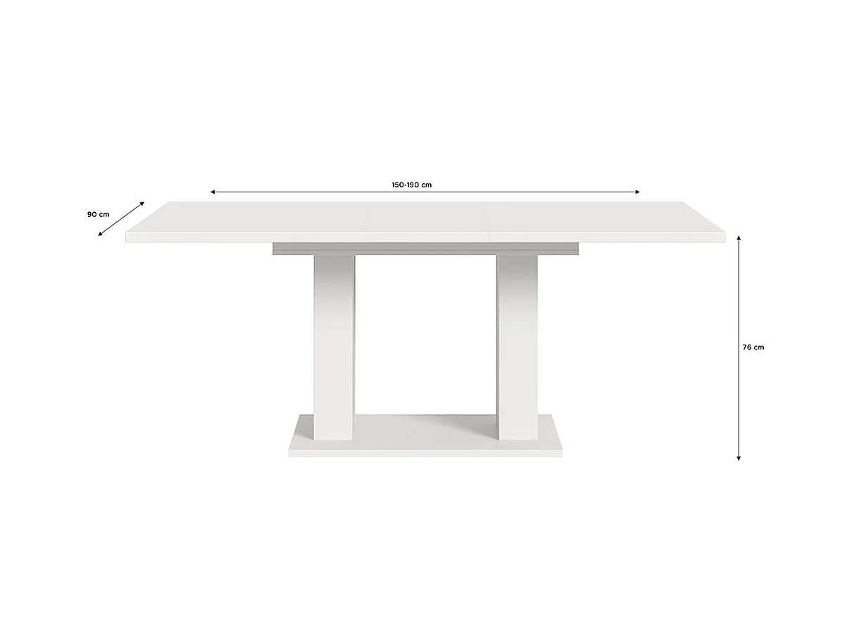 Motion table de salle à manger double colonne 90x150/190 cm avec 1 rallonge blanc.