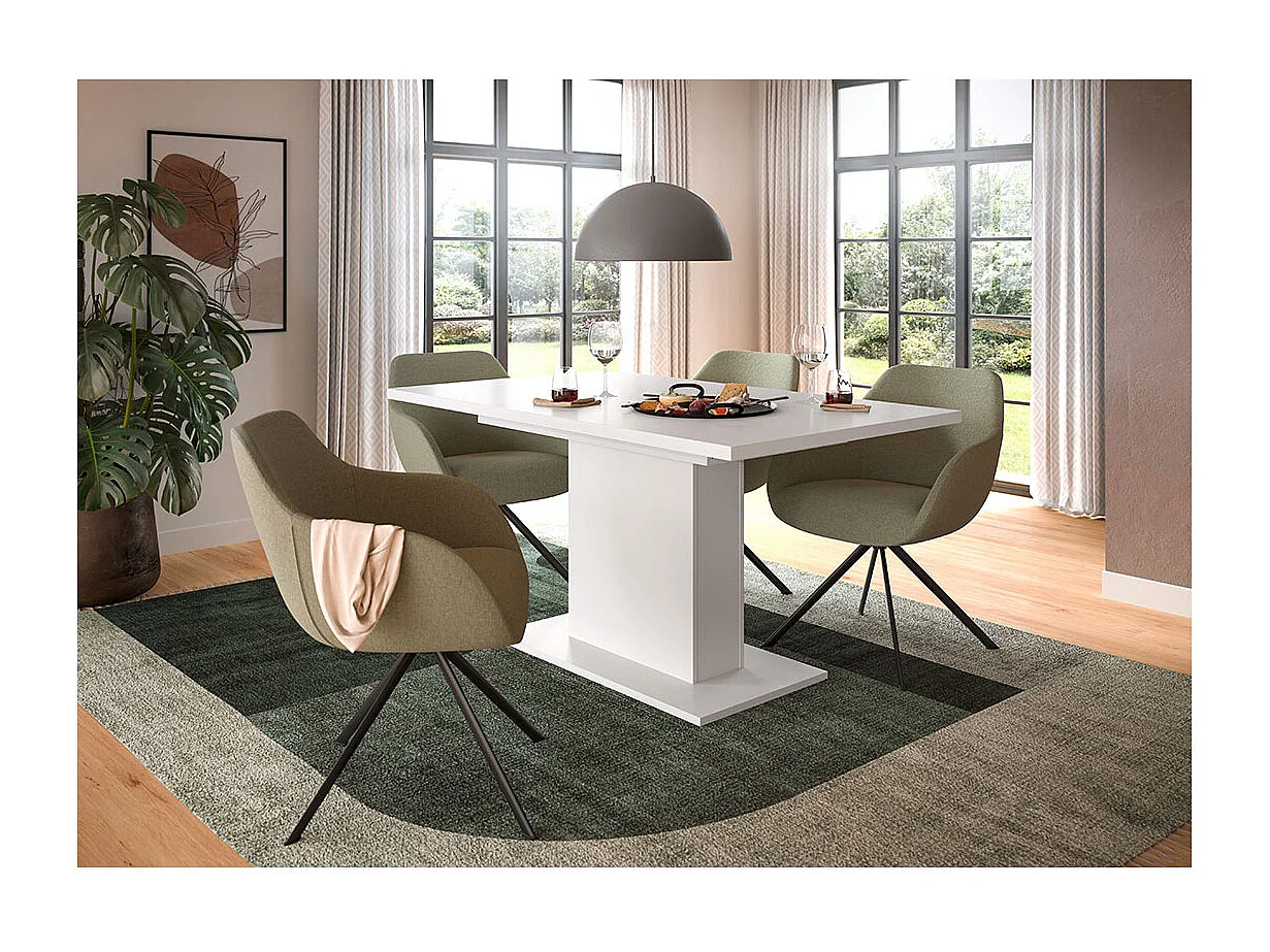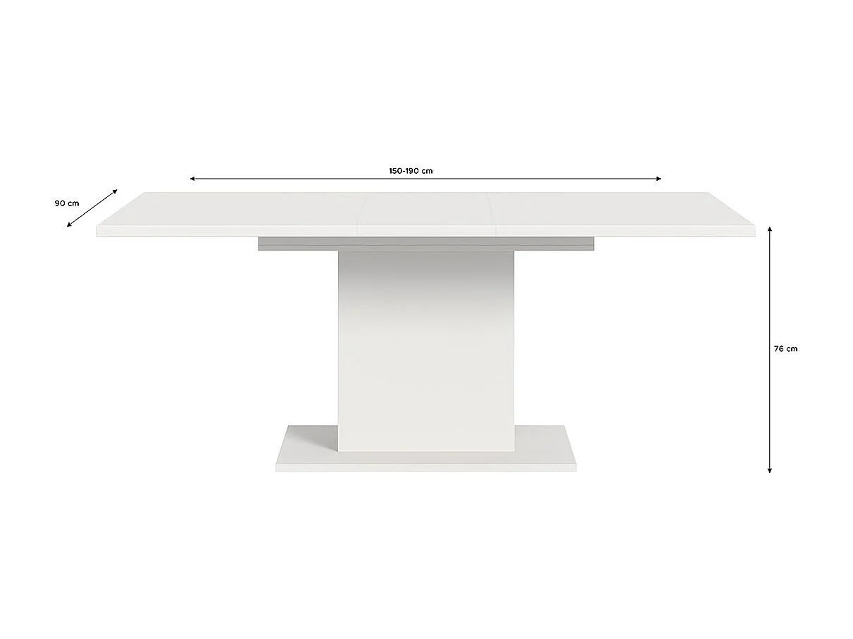 Motion table de salle à manger pied colonne 90x150/190 cm avec 1 rallonge blanc.