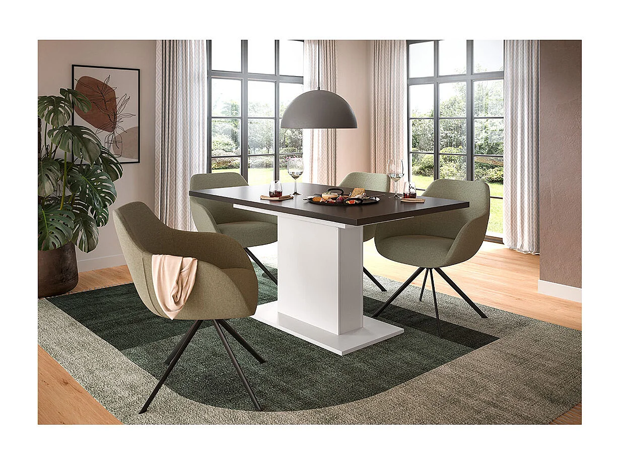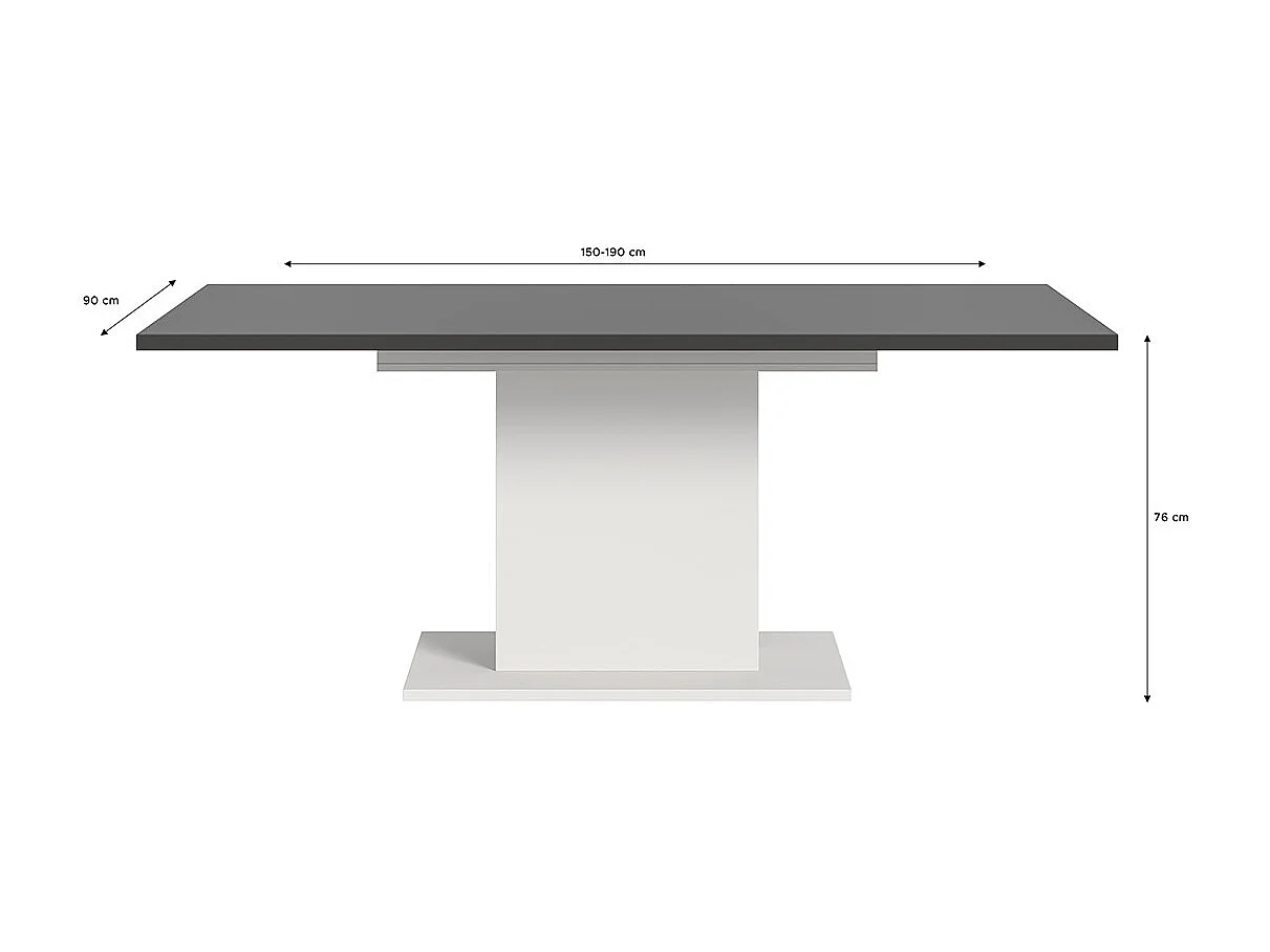 Motion table de salle à manger pied colonne 90x150/190 cm avec 1 rallonge gris, blanc.