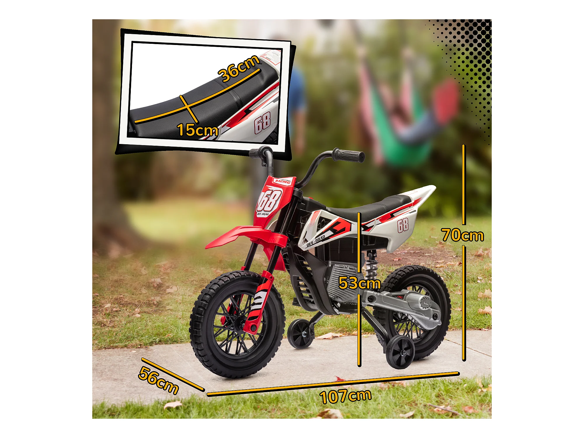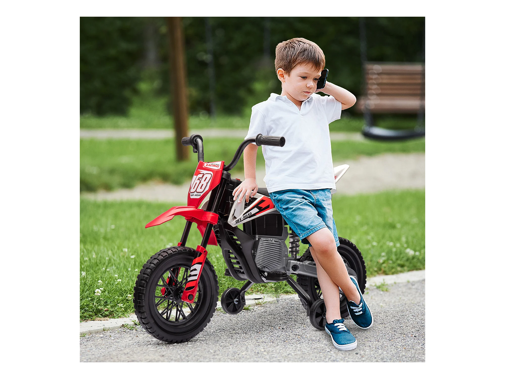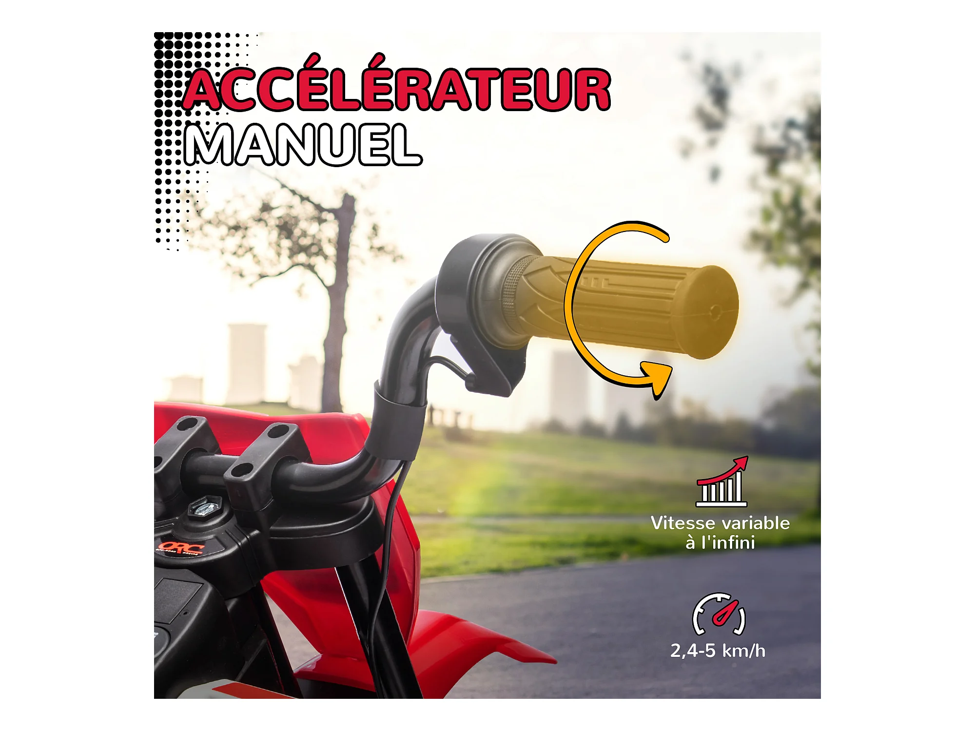 Moto cross électrique dirt bike enfant 12V 2 moteurs 2 vitesses 2,4-5 Km/h musiques rouge