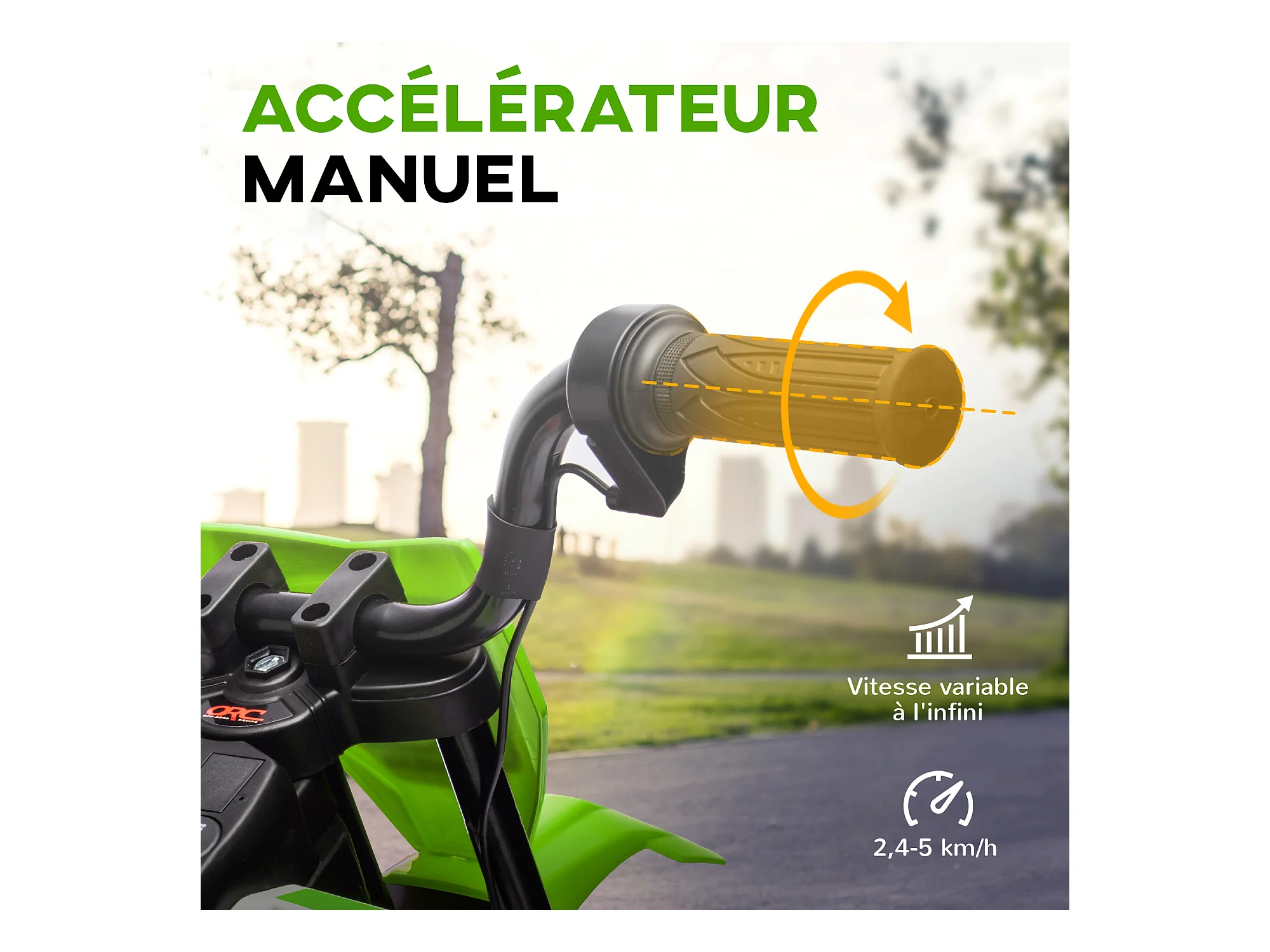 Moto cross électrique dirt bike enfant 12V 2 moteurs 2 vitesses 2,4-5 Km/h musiques vert