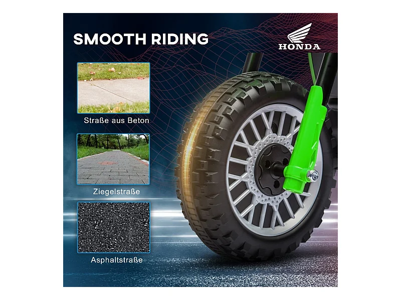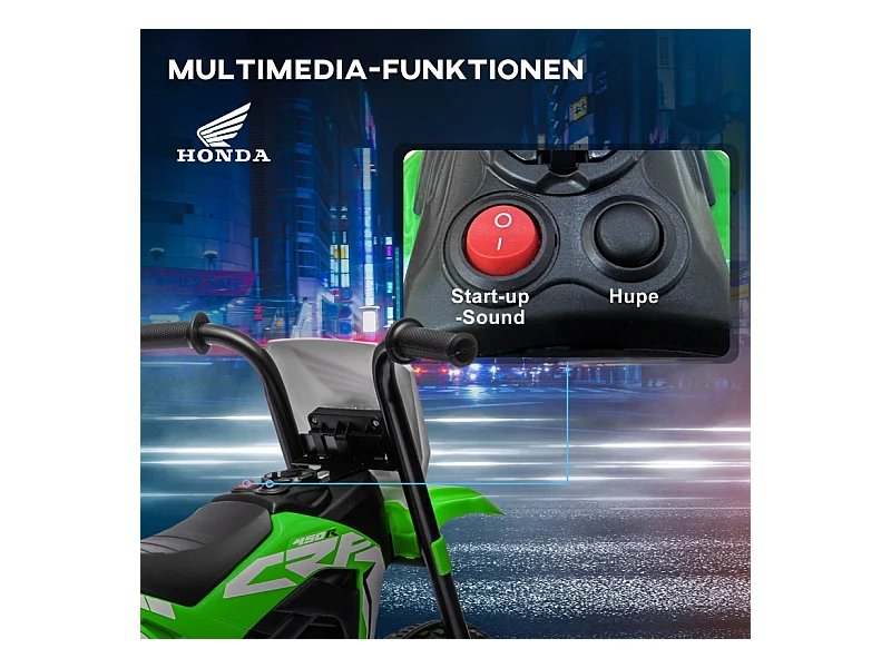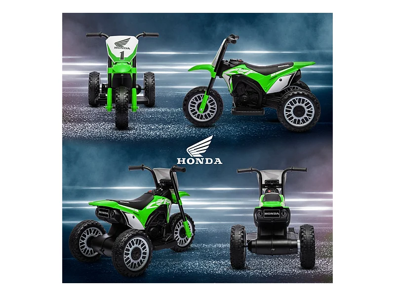 Moto électrique pour enfant, 3 km/h, effets sonores, plastique, vert (71x40.5x43.5 cm)