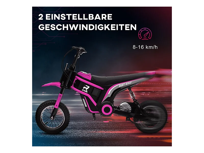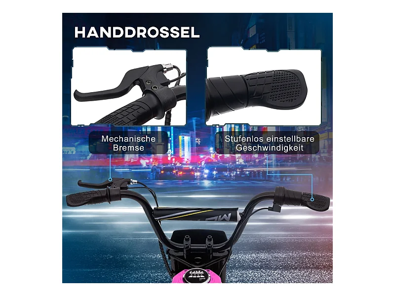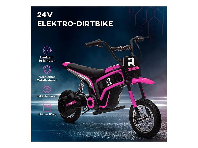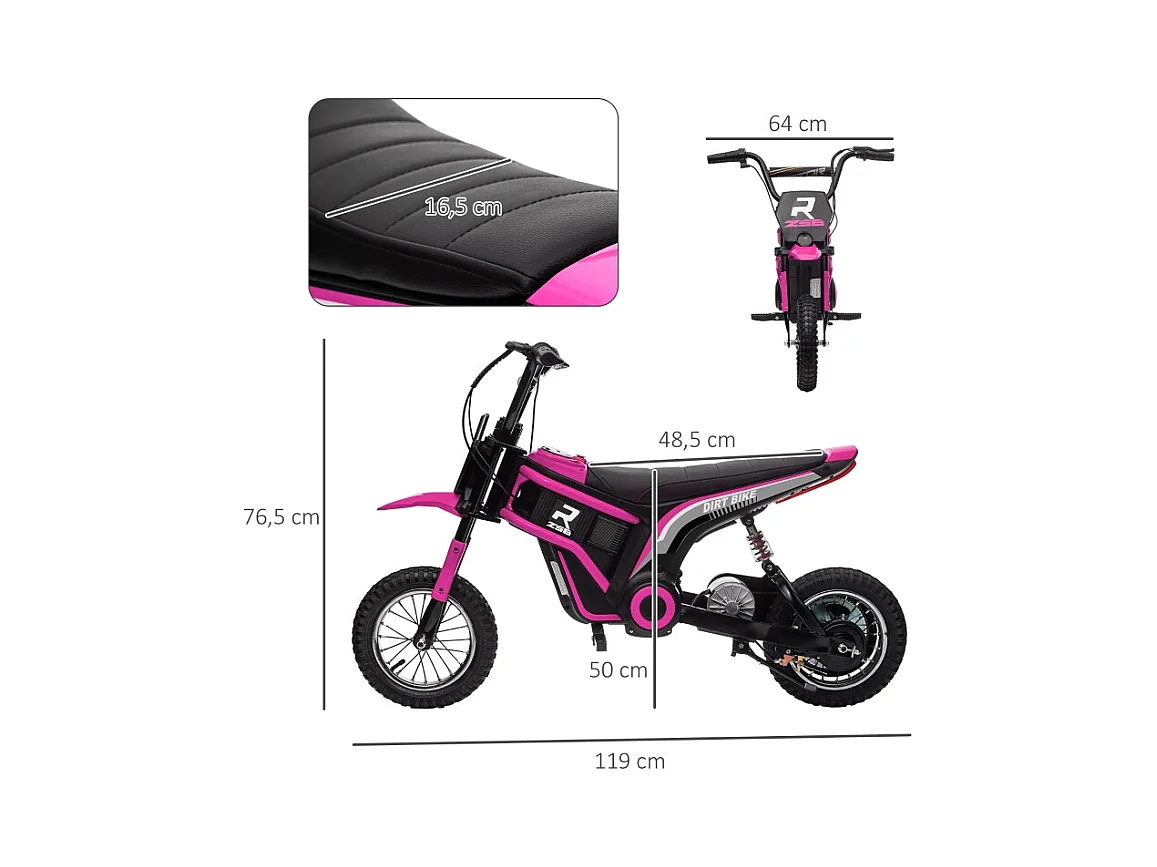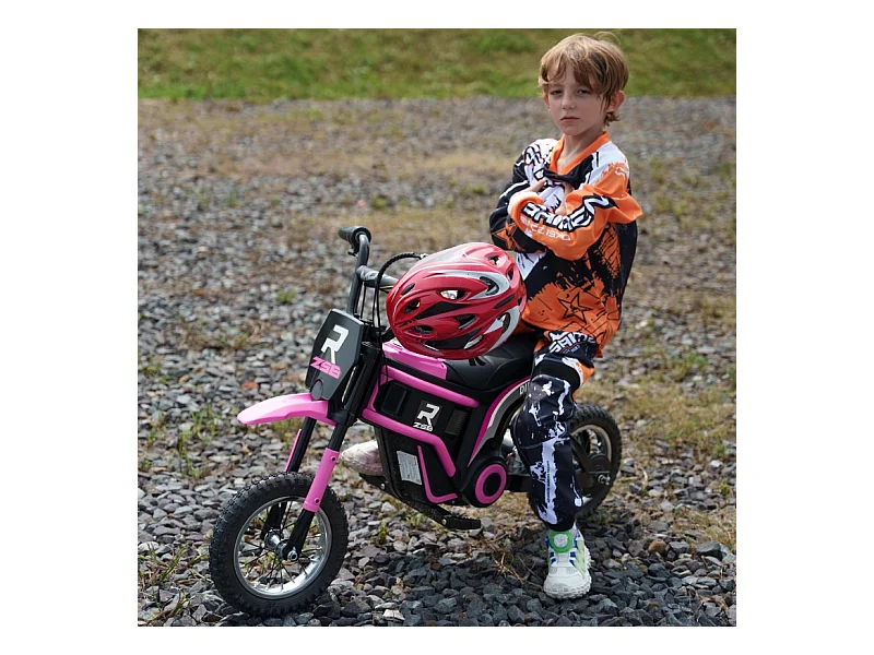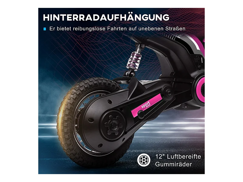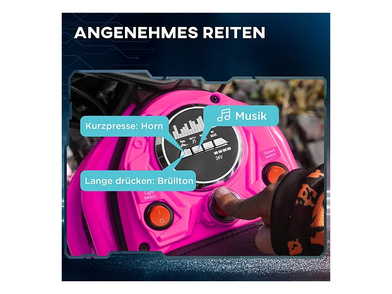 Moto électrique pour enfants, 24V avec klaxon, éclairage et accélérateur à poignée, métal, rose (119x64x76.5 cm)