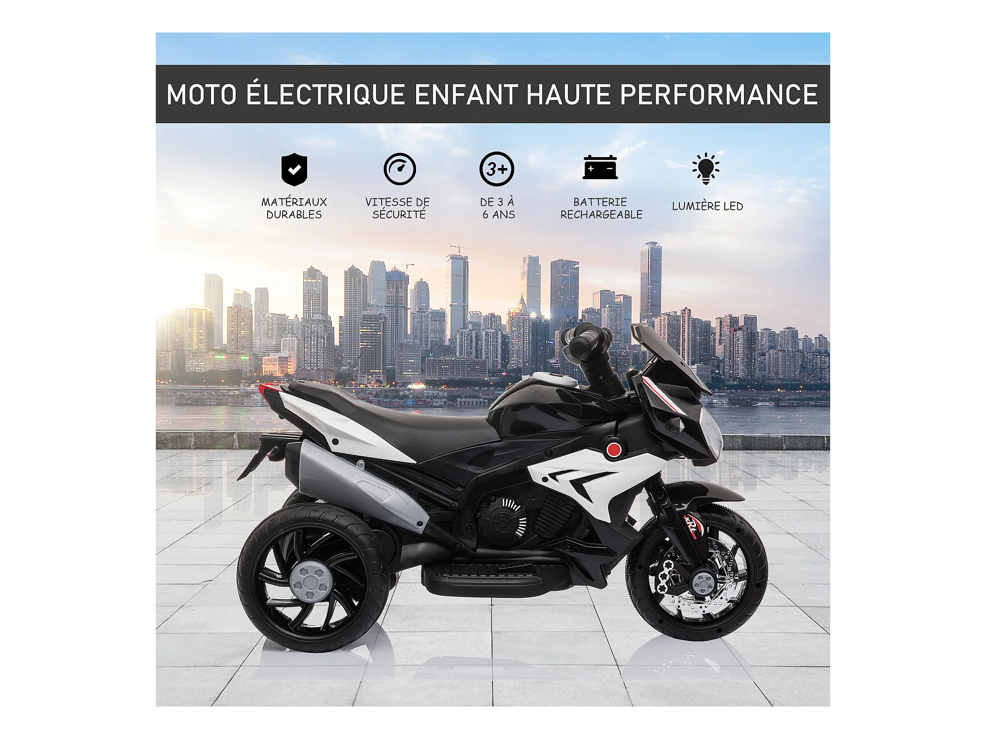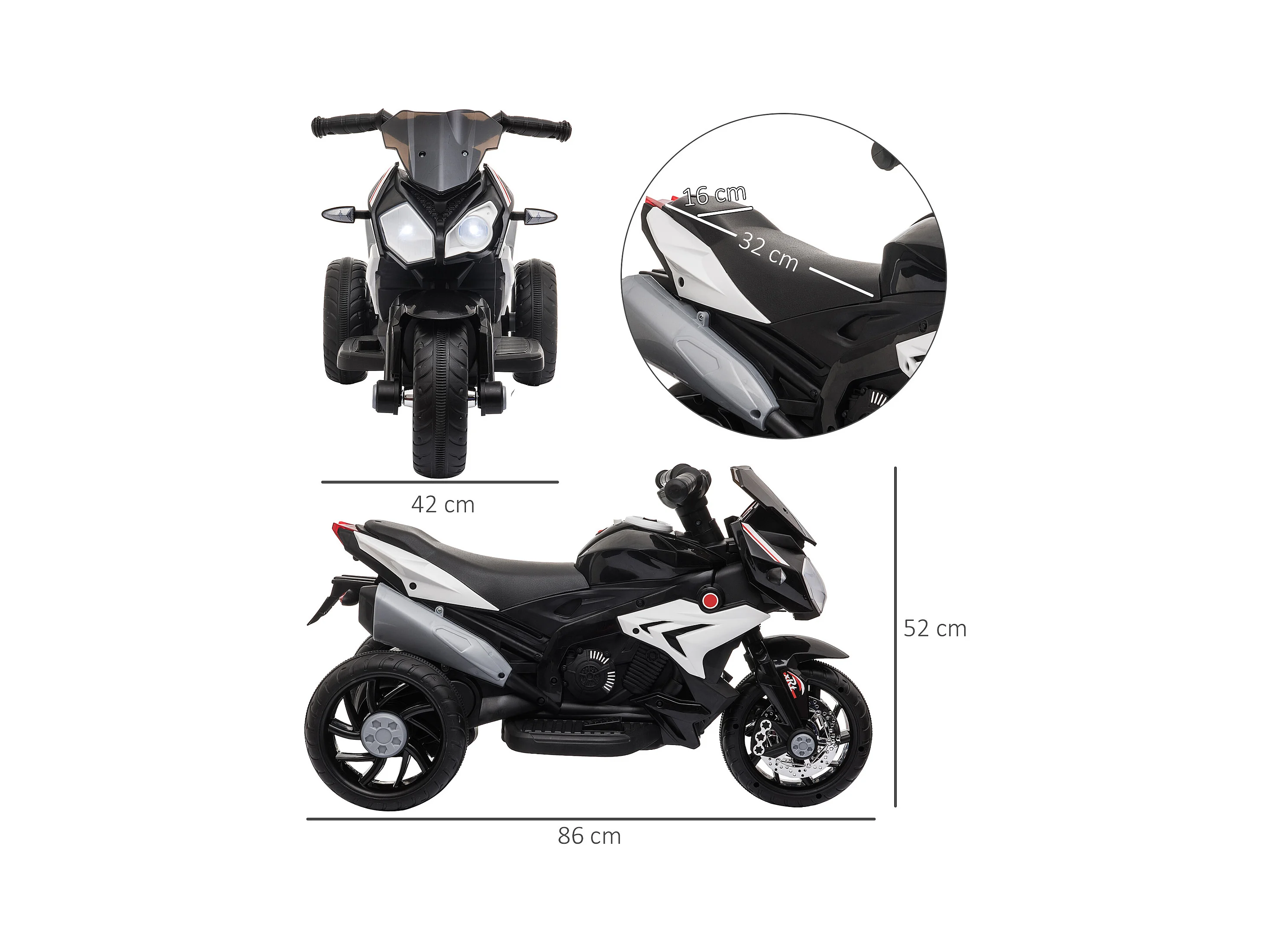 Moto électrique pour enfants 3 roues 6 V 3 Km/h effets lumineux et sonores noir