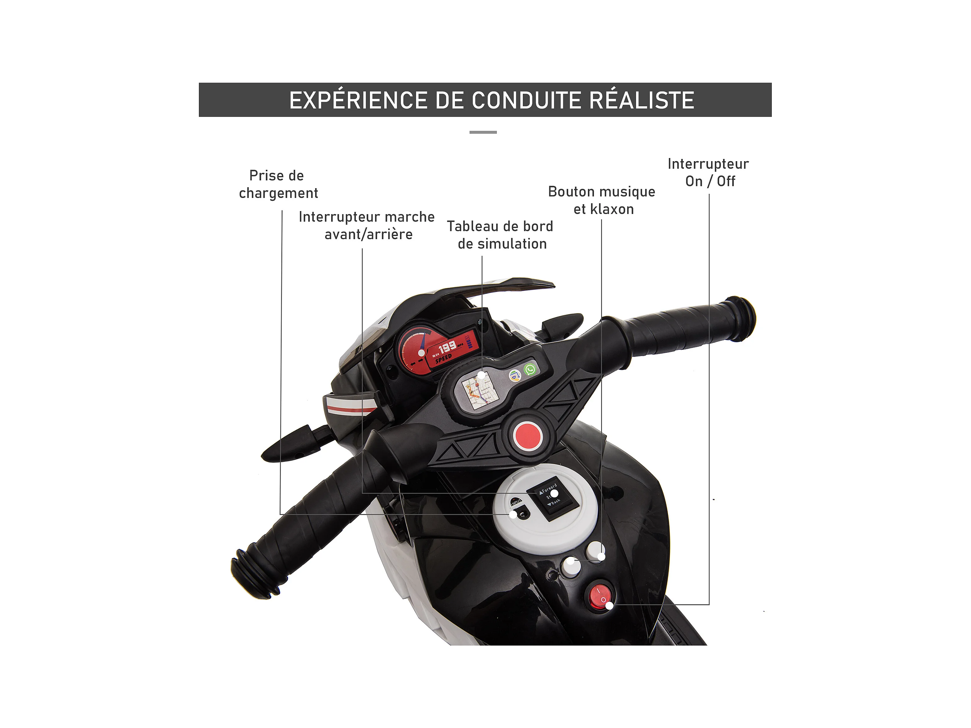 Scooter électrique enfant - moto enfant 6V 25W 2 vitesses 1,5-3 Km/h - effets sonores lumineux - noir
