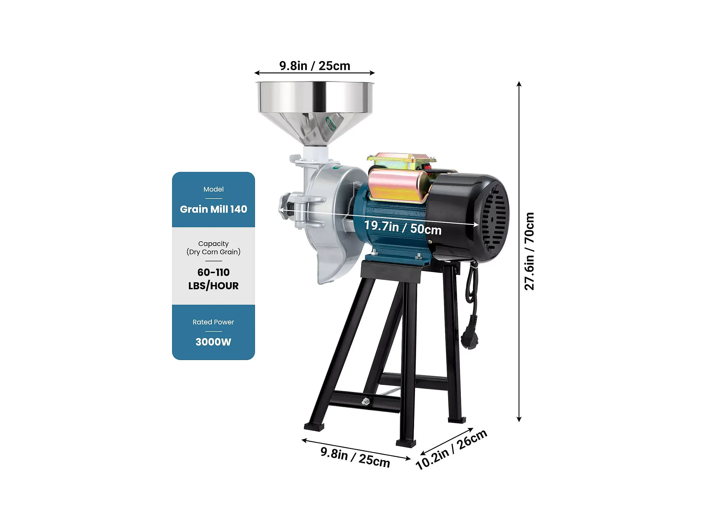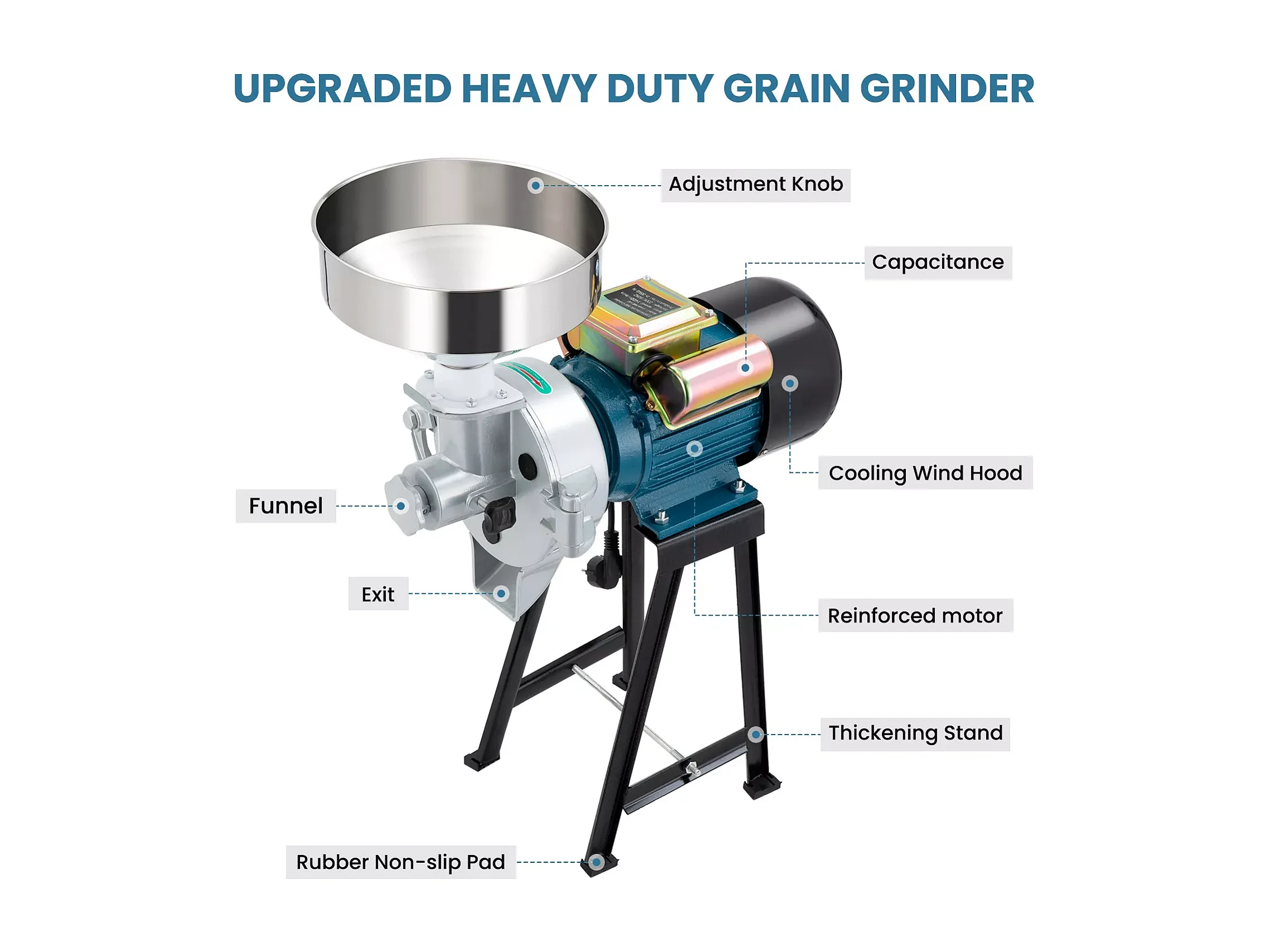 2200w Moulin à farine sec et humide 2 en 1, 50x26x70cm, pour céréales, paille - EU plug