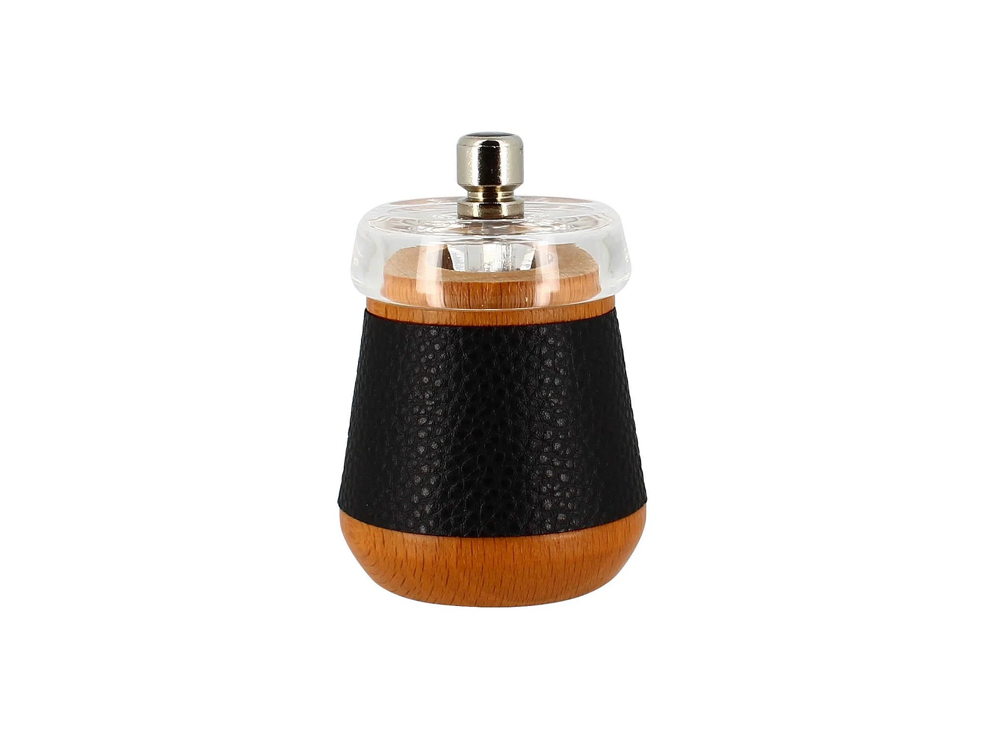 Ogo Living - Moulin A Poivre 8.5cm En Bois De Hetre Effet Cuir Noir