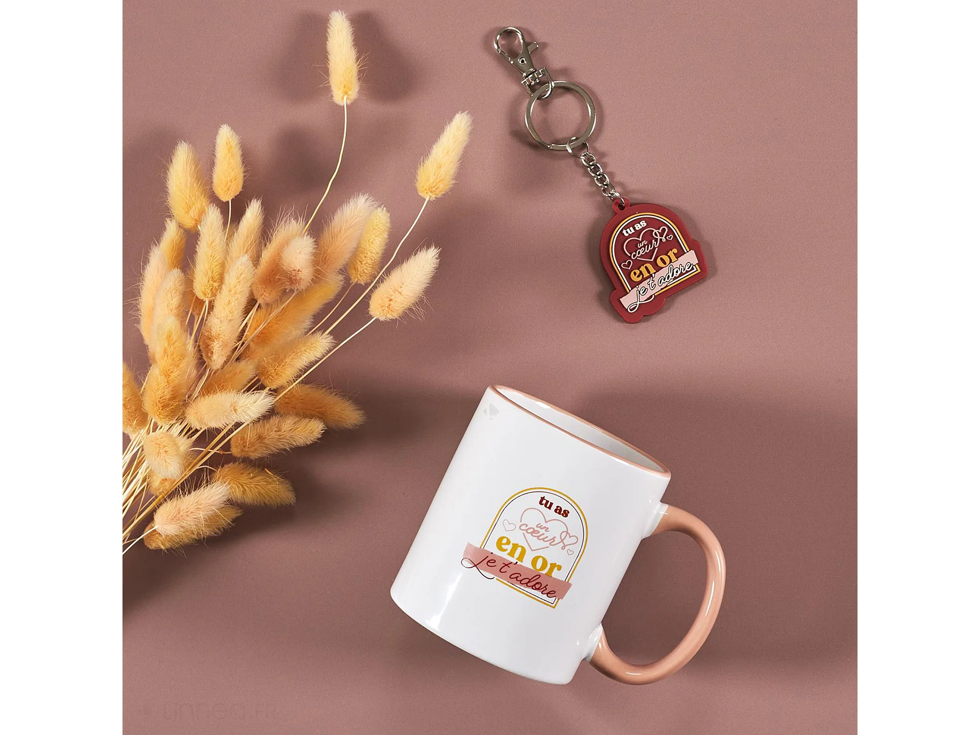 Mug en céramique 30 cl et son porte clé collection PAMPELONNE rouge