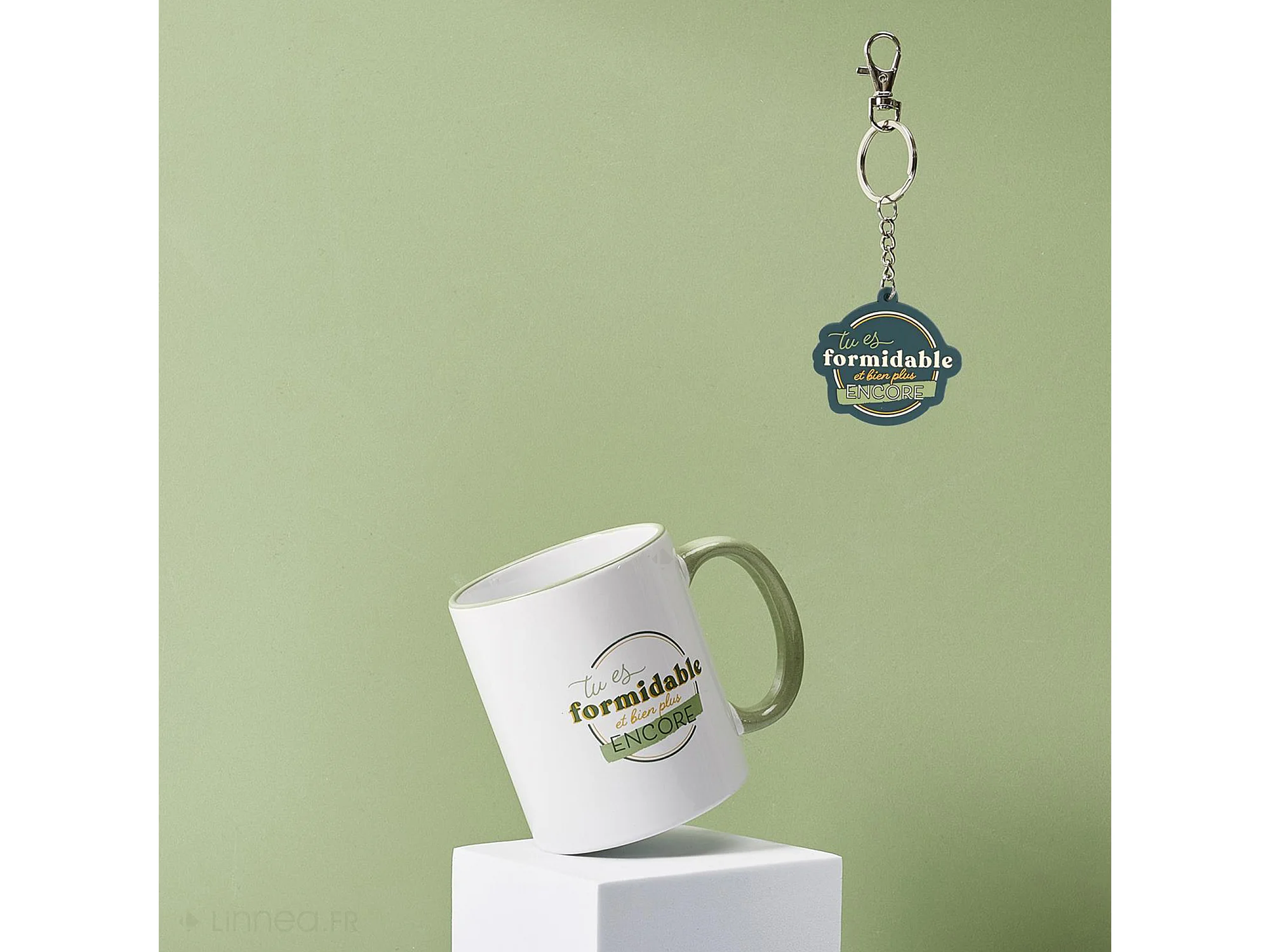 Mug en céramique 30 cl et son porte clé collection PAMPELONNE vert