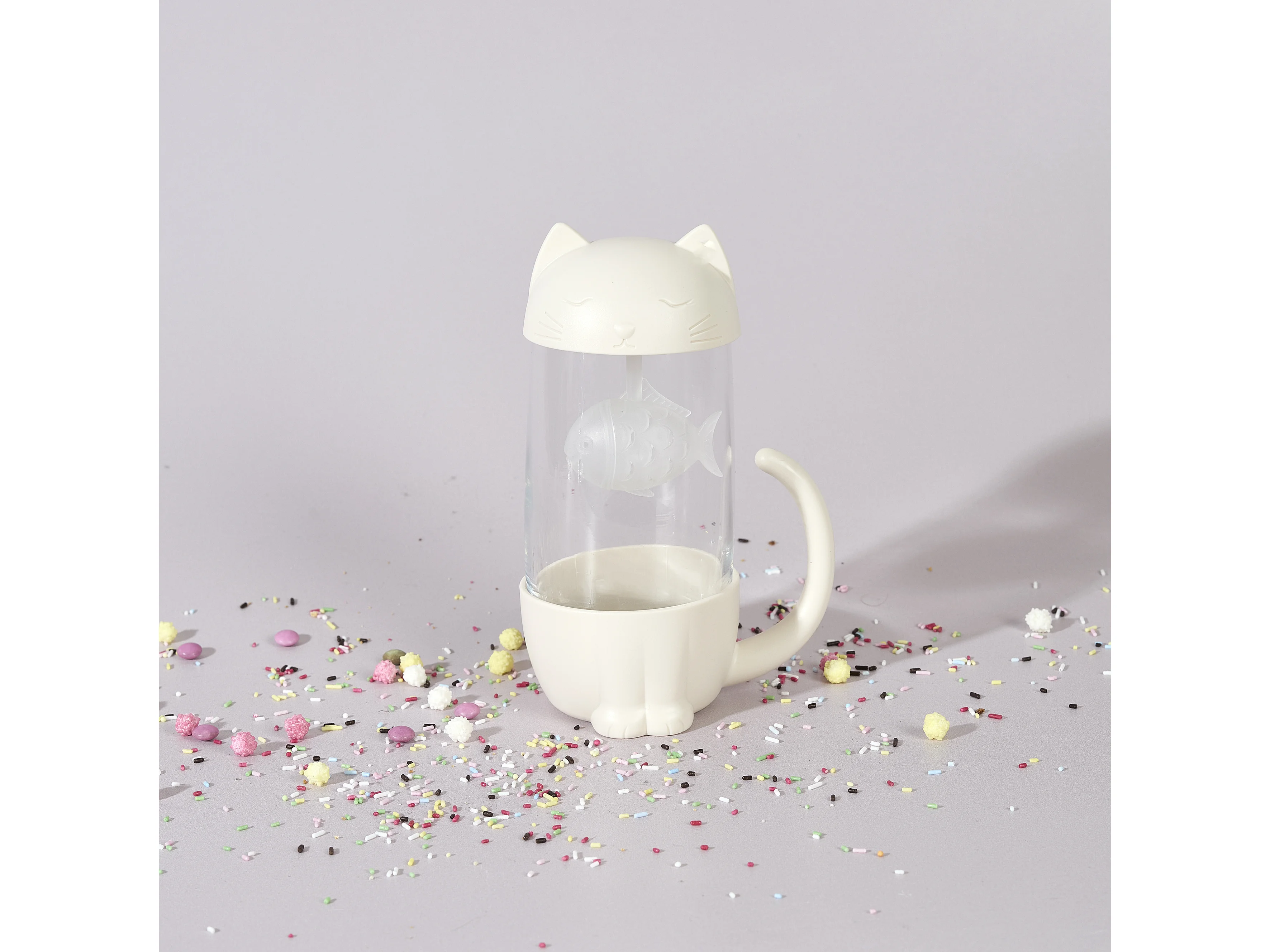 Mug Infuseur Poisson Chat 30cl Blanc, Transparent