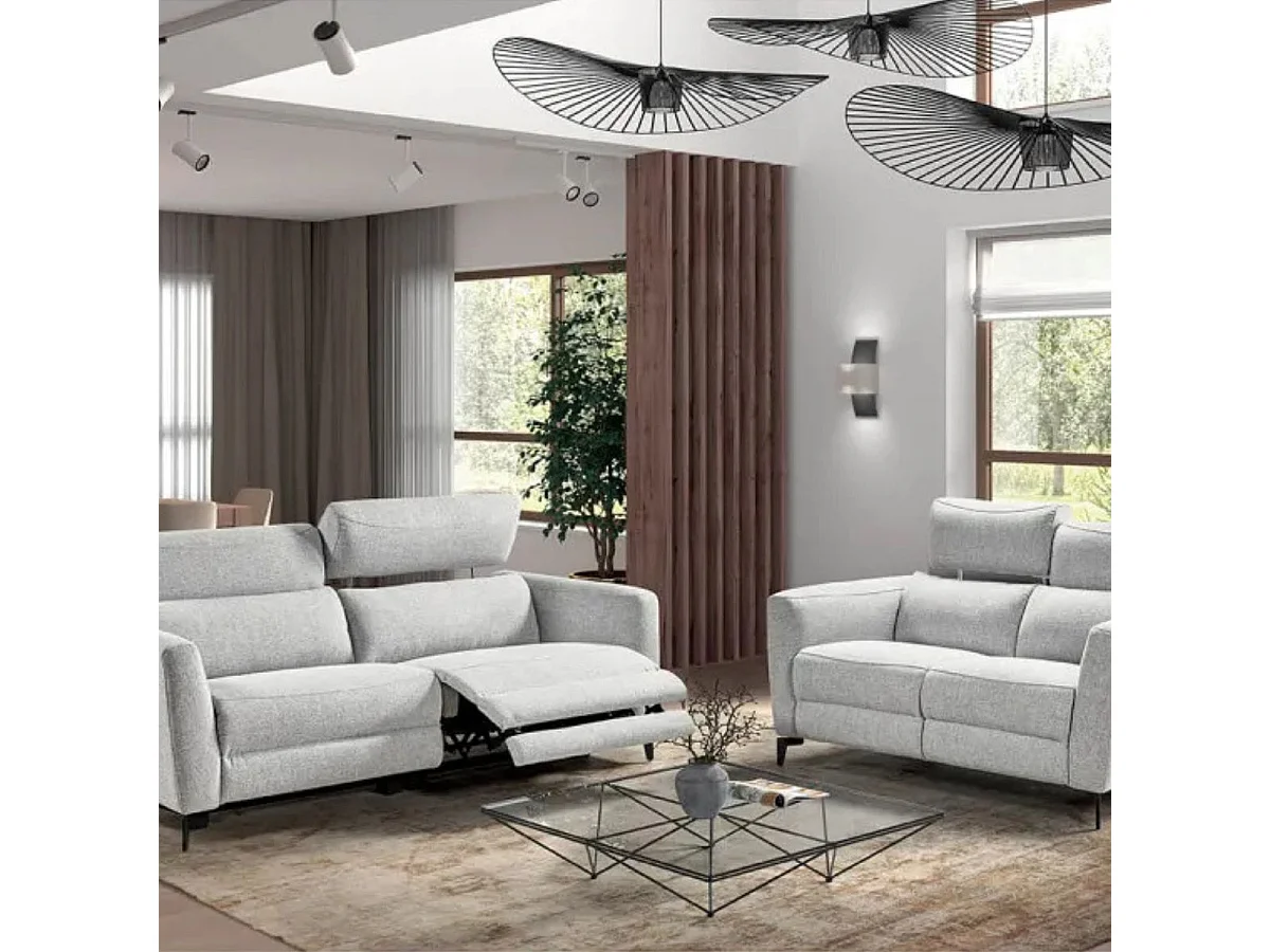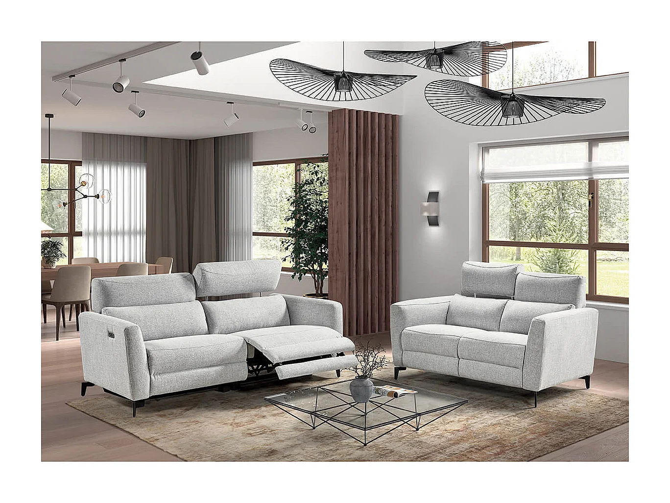 MUMBAI - Canapés Relax 3 Places Electrique et 2 Places Fixe Gris Clair