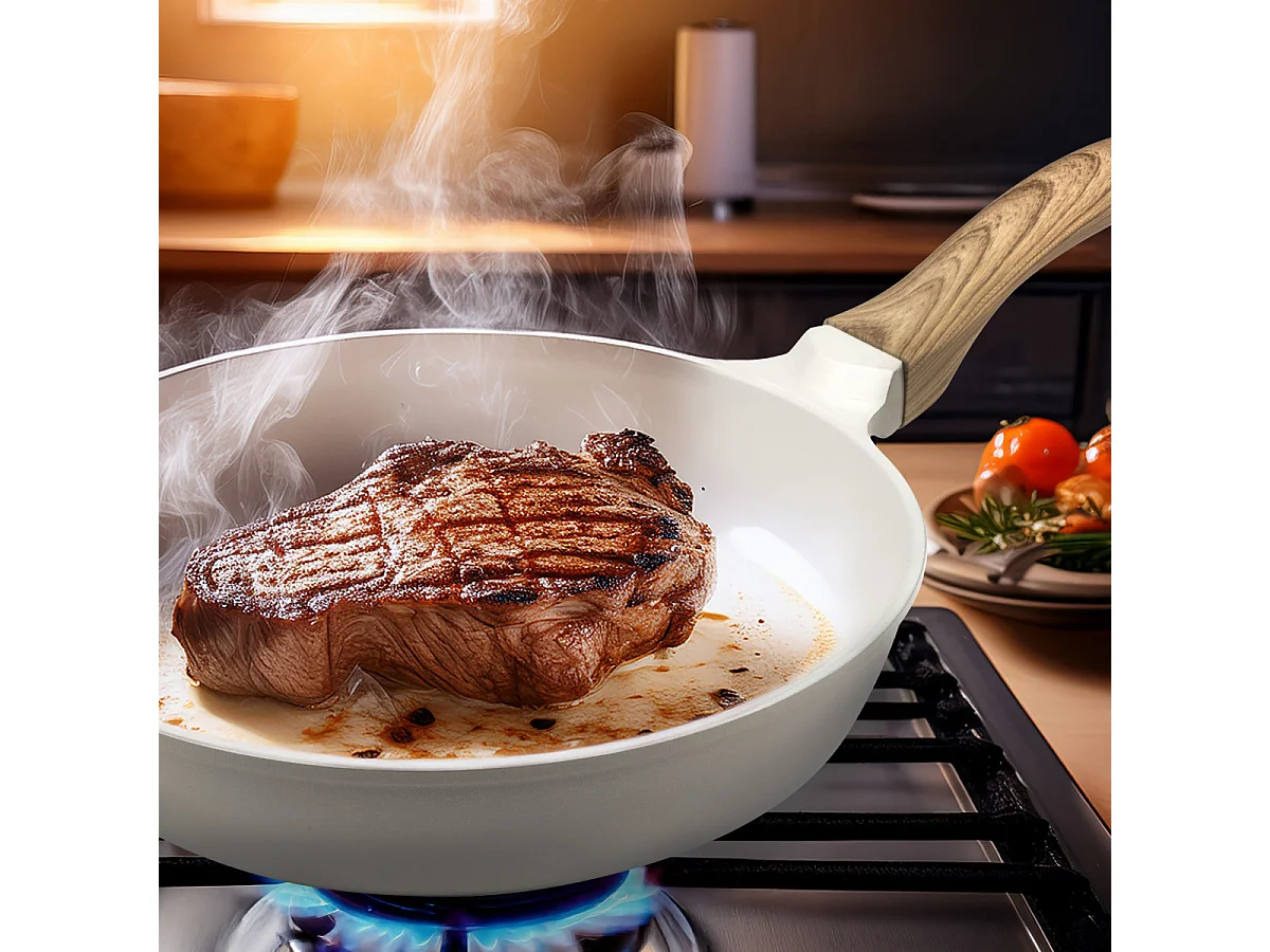 Mythic - Set 2 poêles 24/28cm revêtement céramique blanche, 1 couteaux d'office